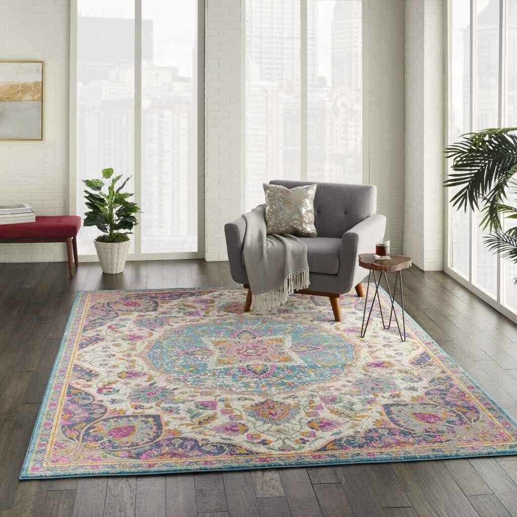 7' X 10' Pink And Green Dhurrie Area Rug