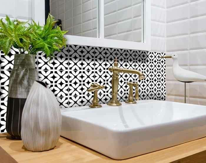 The possibilities are endless with these 7" x 7" Black and White Pinna Peel and Stick Removable Tile stickers. These fabulous peel and stick tiles will add lots of color, sophisticated flair, and fun design to your kitchen backsplash, fireplace mantel, stair treads, half wall, bathroom or nook. These 7" square tile stickers in multiple bright fun colors and designs are an easy, no mess solution to complete a personalized and colorful room makeover. Easy to apply on any clean dry flat surface, and easy to remove. Multi use and multi-room appeal make this design option is perfect for renters, landlords, college students and homeowners alike. Peel and stick tile decals make it easy to turn your space into a home. Removable without damage to surfaces. One kit contains 24 stickers. Kit includes a single style tile design.