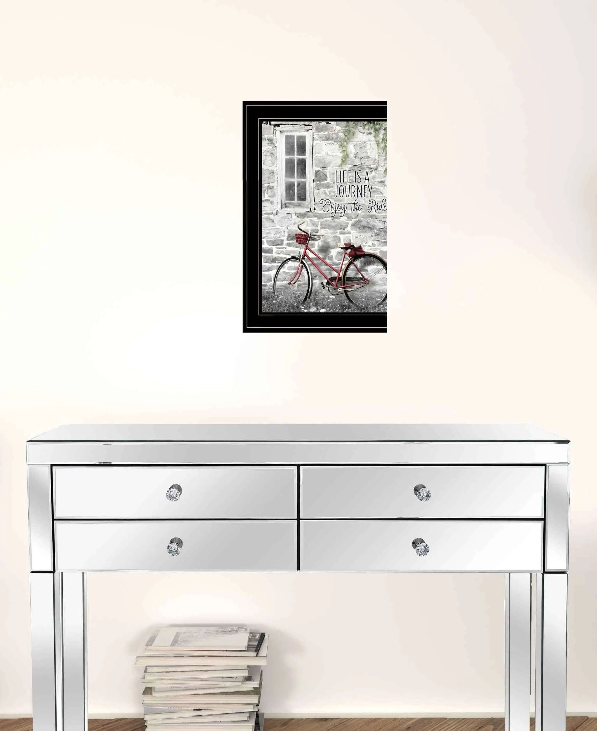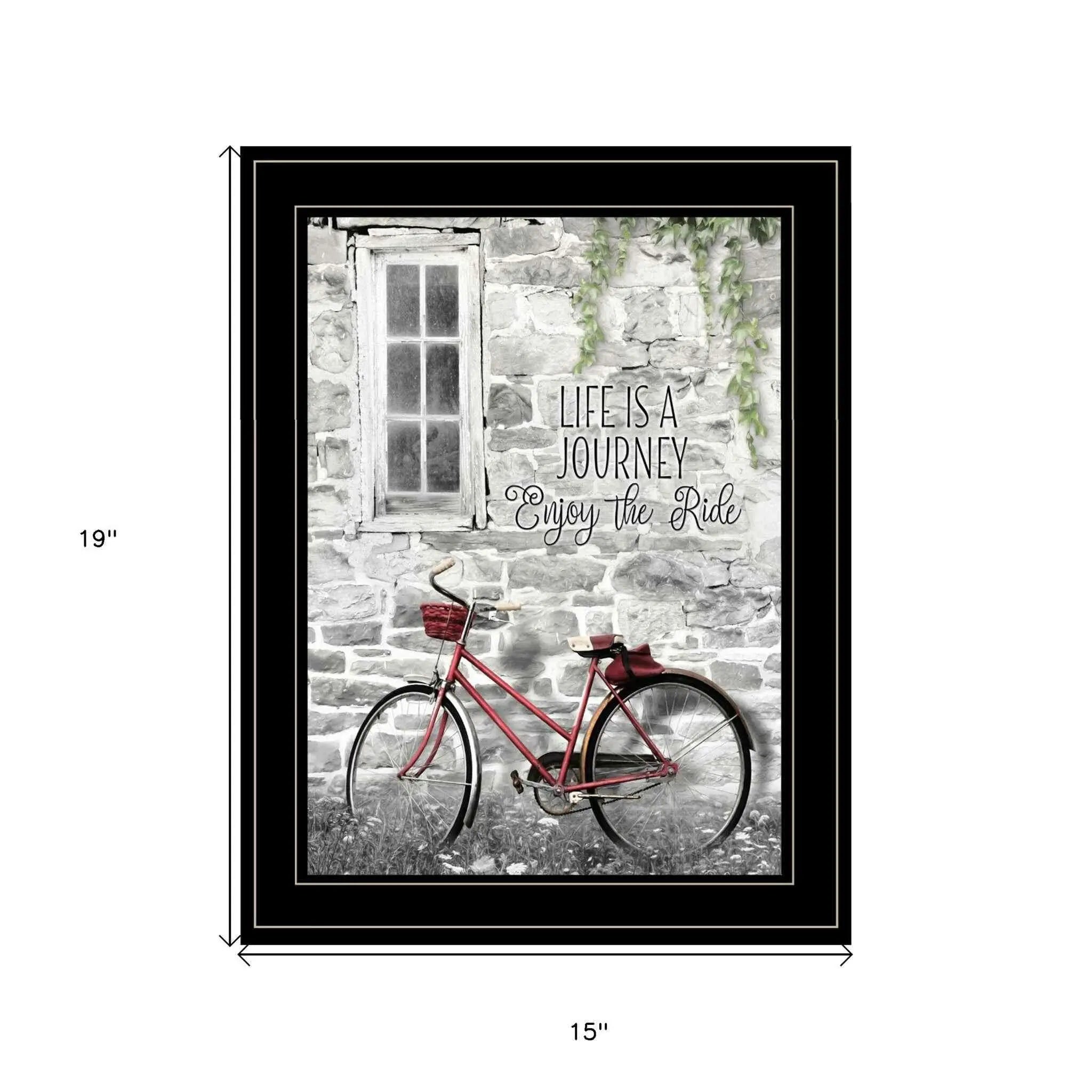 Unique and decorative, this life is a journey enjoy black framed print wall art will leave a lasting impression. This transportation inspired wall art features a bicycle icon and will bring a refreshing look and perspective to your walls. This print is a visual artistic expression that allows you to decorate your space in style. Reproduced for you on paper, this hanging decorative accent will be a trendy and fashionable way to dress your walls. Adding this hanging wall art to your space to make your room feel more finished and attractive. Utilize this opportunity to create a focal point in the room with this fabulous wall decor option. 19 inches H x 15 inches W x 1 inches D