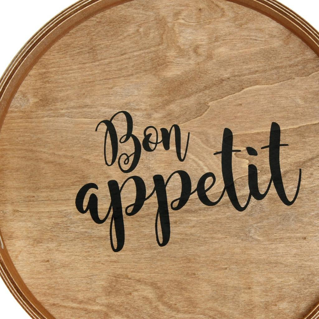 14" Natural And Black Bon Appetit Round Serving Tray With Handles - 本文へスキップ