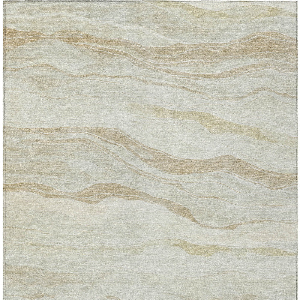 10' X 14' Beige Striped Washable Indoor Outdoor Area Rug