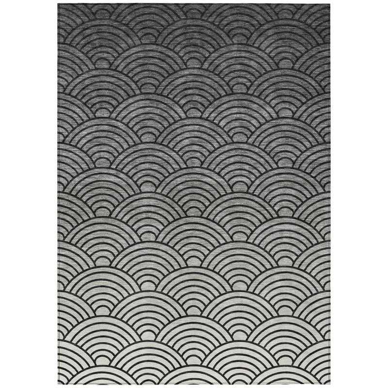 10' X 14' Black Silver And Gray Geometric Washable Indoor Outdoor Area Rug