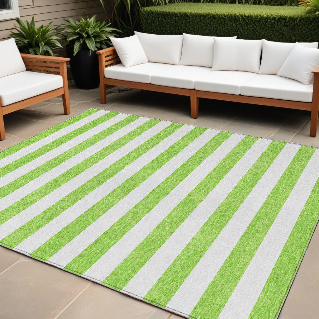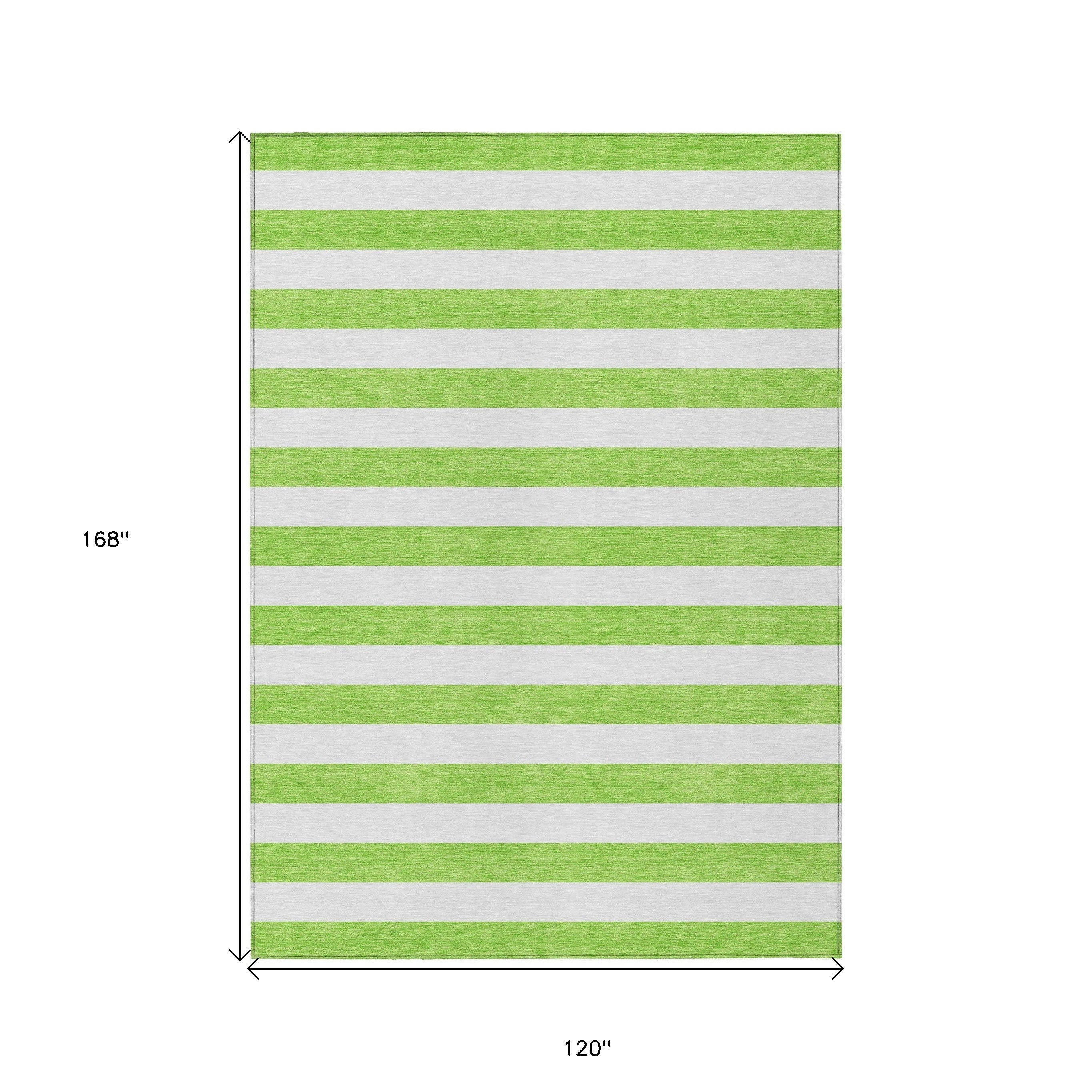 10' X 14' Green and White Striped Washable Non Skid Indoor Outdoor Area Rug