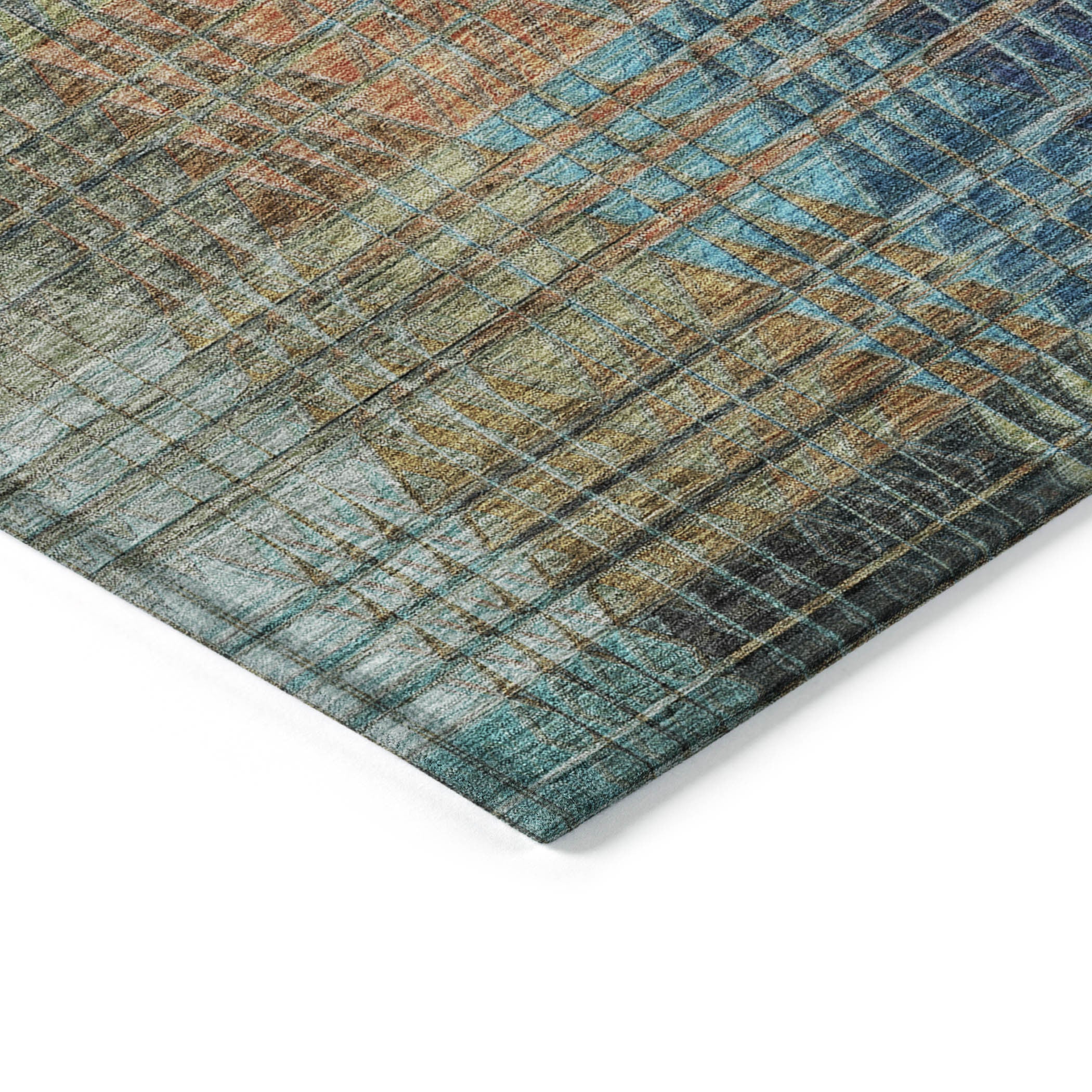 10' X 14' Green Gold And Teal Blue Abstract Washable Indoor Outdoor Area Rug