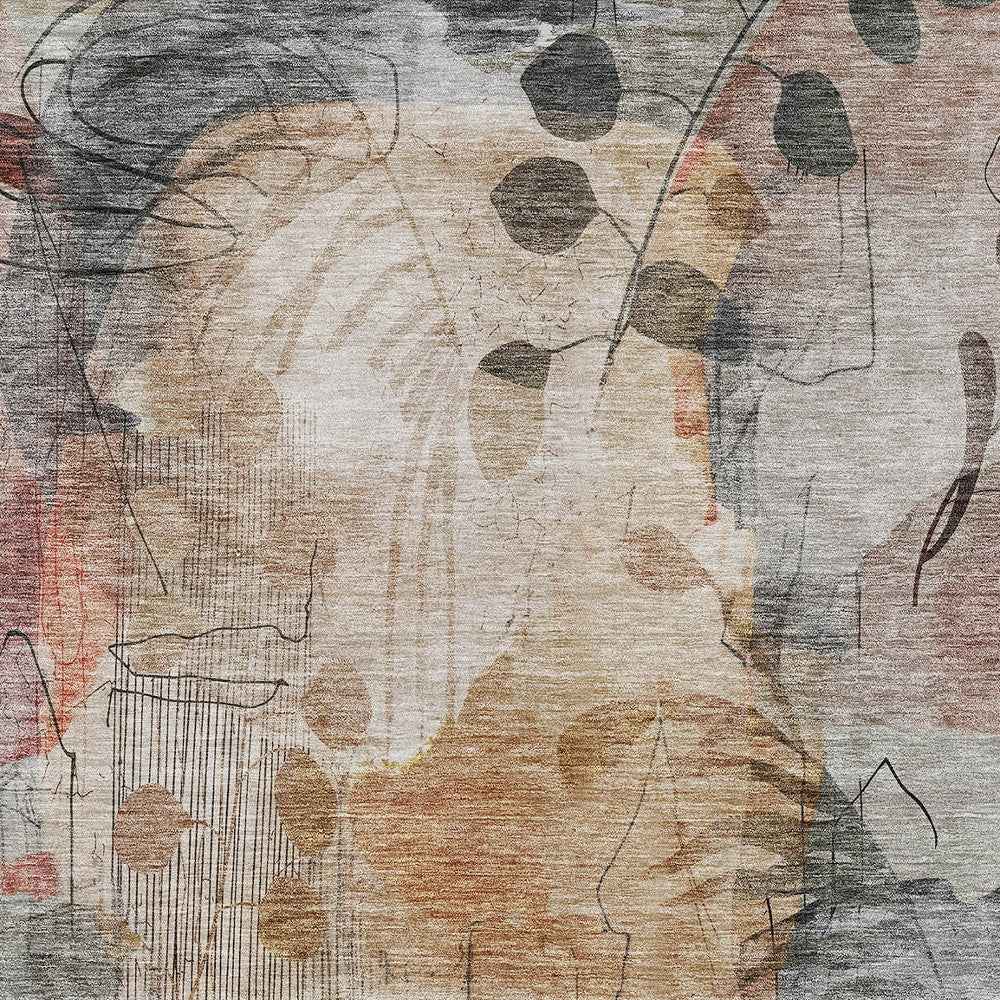 10' X 14' Terra Cotta Copper And Beige Floral Washable Indoor Outdoor Area Rug