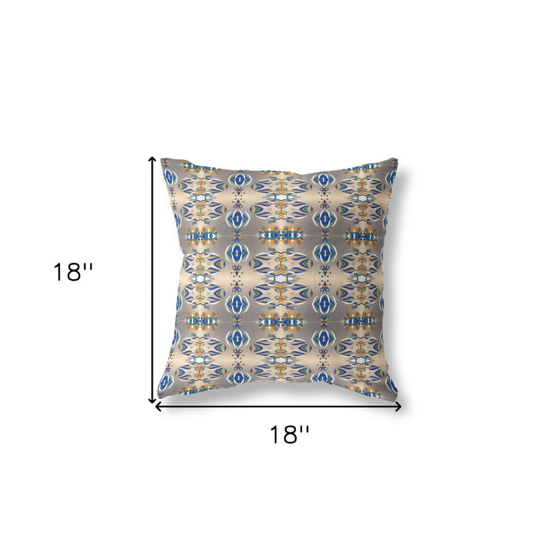 18" X 18" Brown And Blue Abstract Blown Seam Suede Throw Pillow
