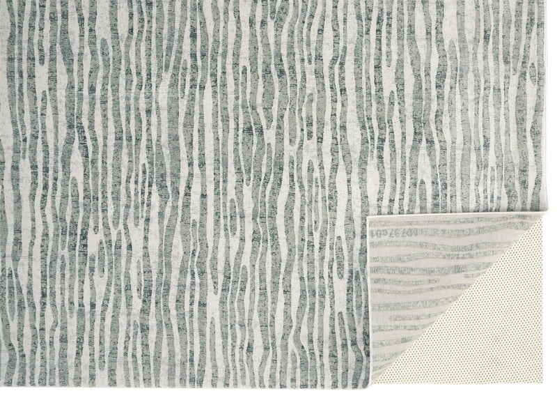 2' X 3' Gray Green And Ivory Striped Distressed Stain Resistant Area Rug