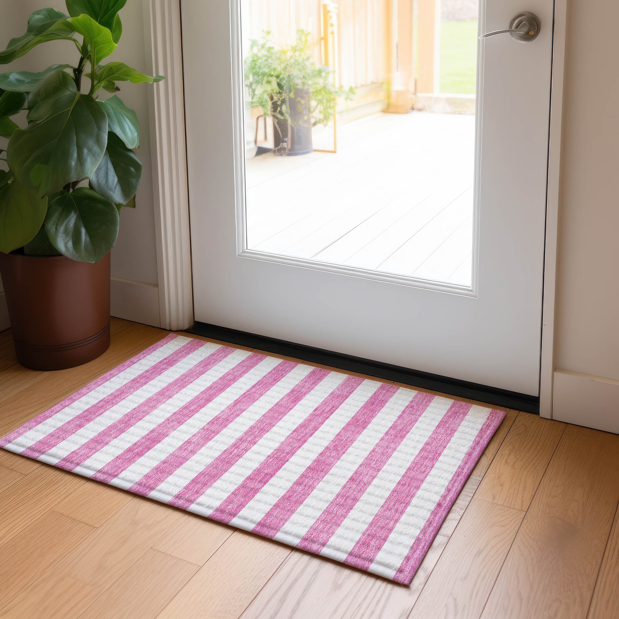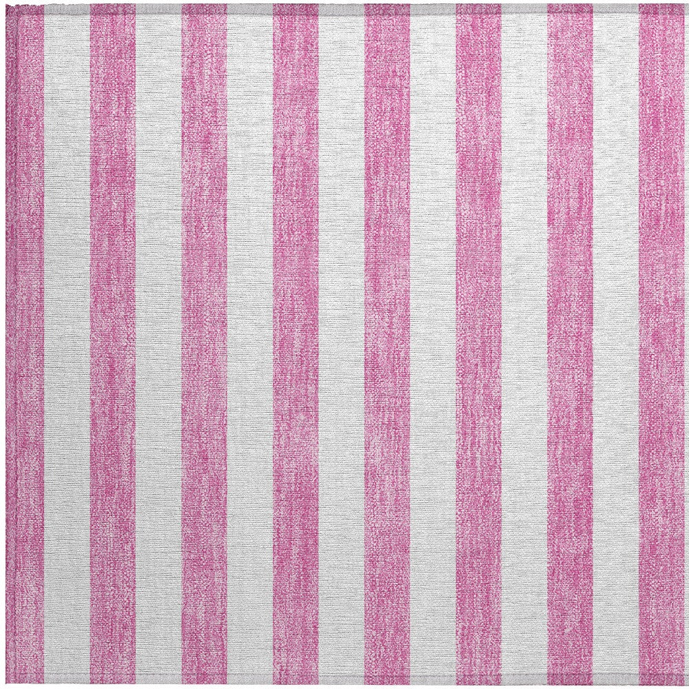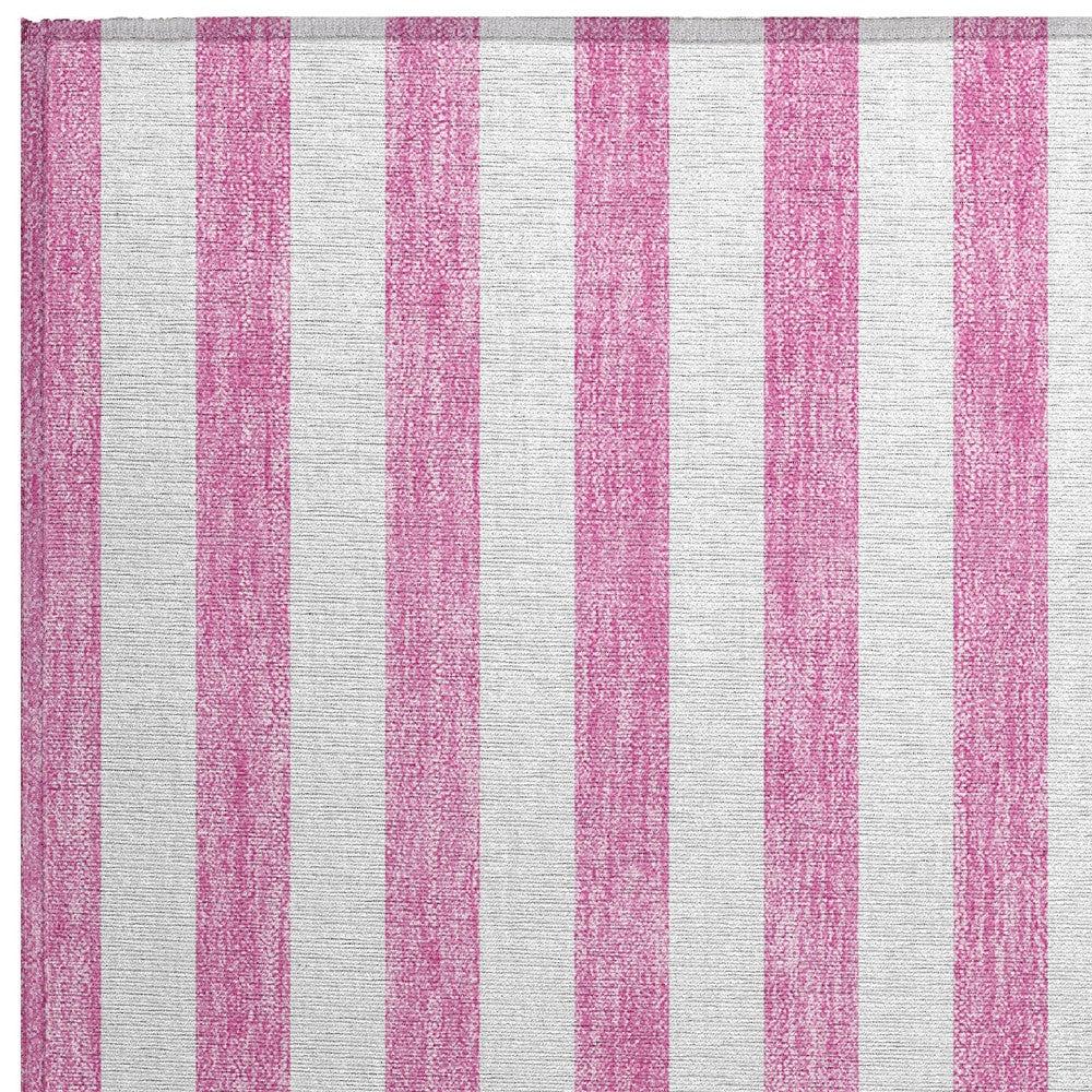 2' X 3' Pink and White Striped Washable Non Skid Indoor Outdoor Area Rug