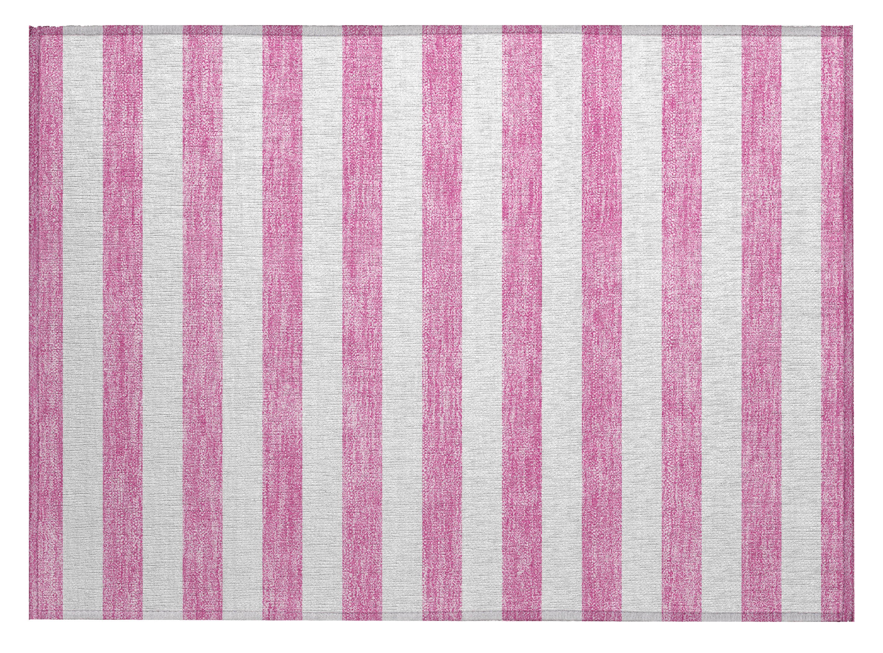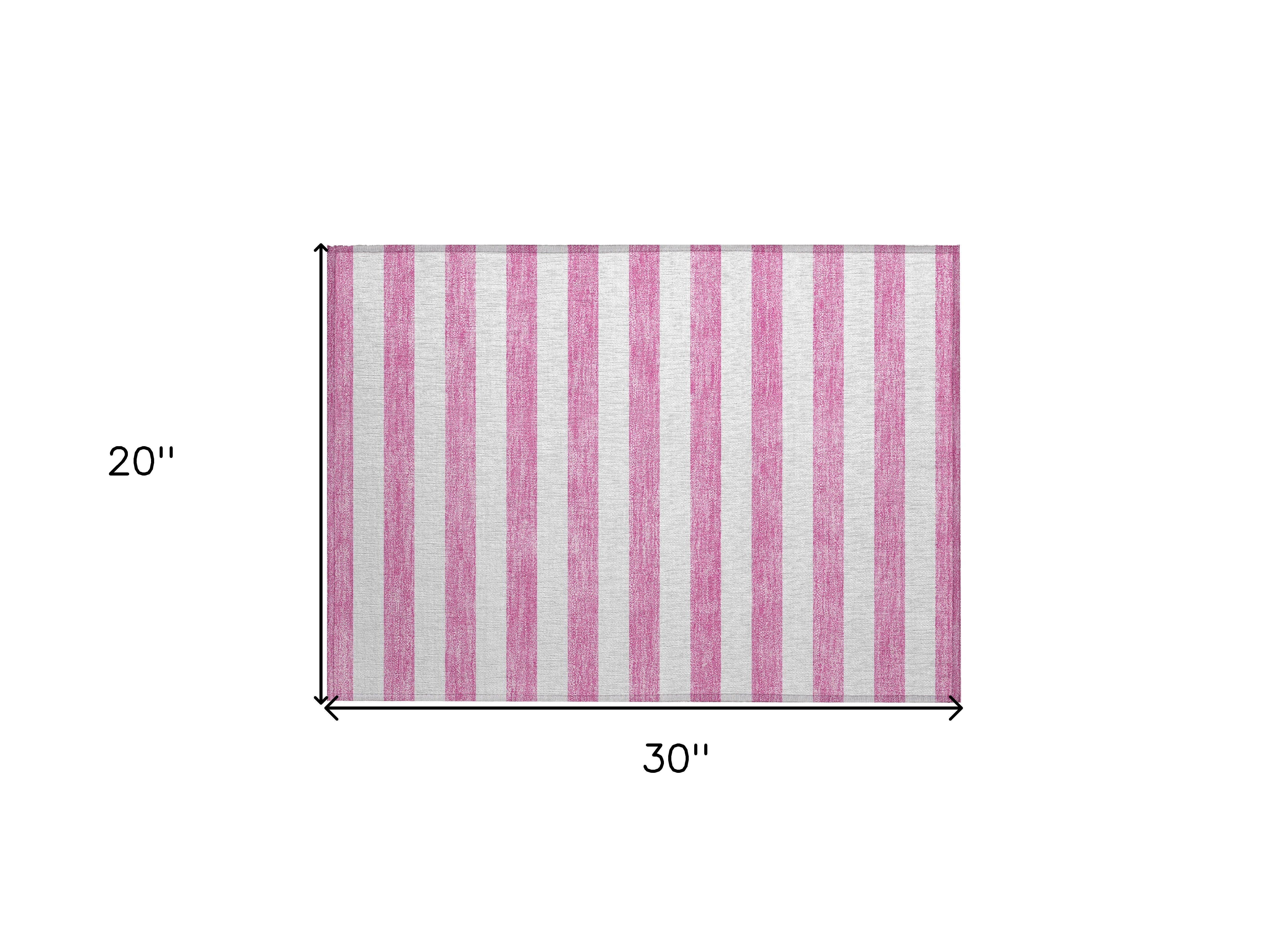 Set an inviting tone in your space with this 2-foot x 3-foot pink and white striped washable stain resistant non skid indoor outdoor area rug. This rectangle shaped rug features a striped design in pink and white to give it visual interest. A classic shape marries with good looking design for your space ideal for spaces with kids and pets, this rug is stain resistant to help repel stains and spilled liquids. Area rugs help to give warmth and sense of home to your space. 20-inch H x 30-inch W x 0.19-inch D