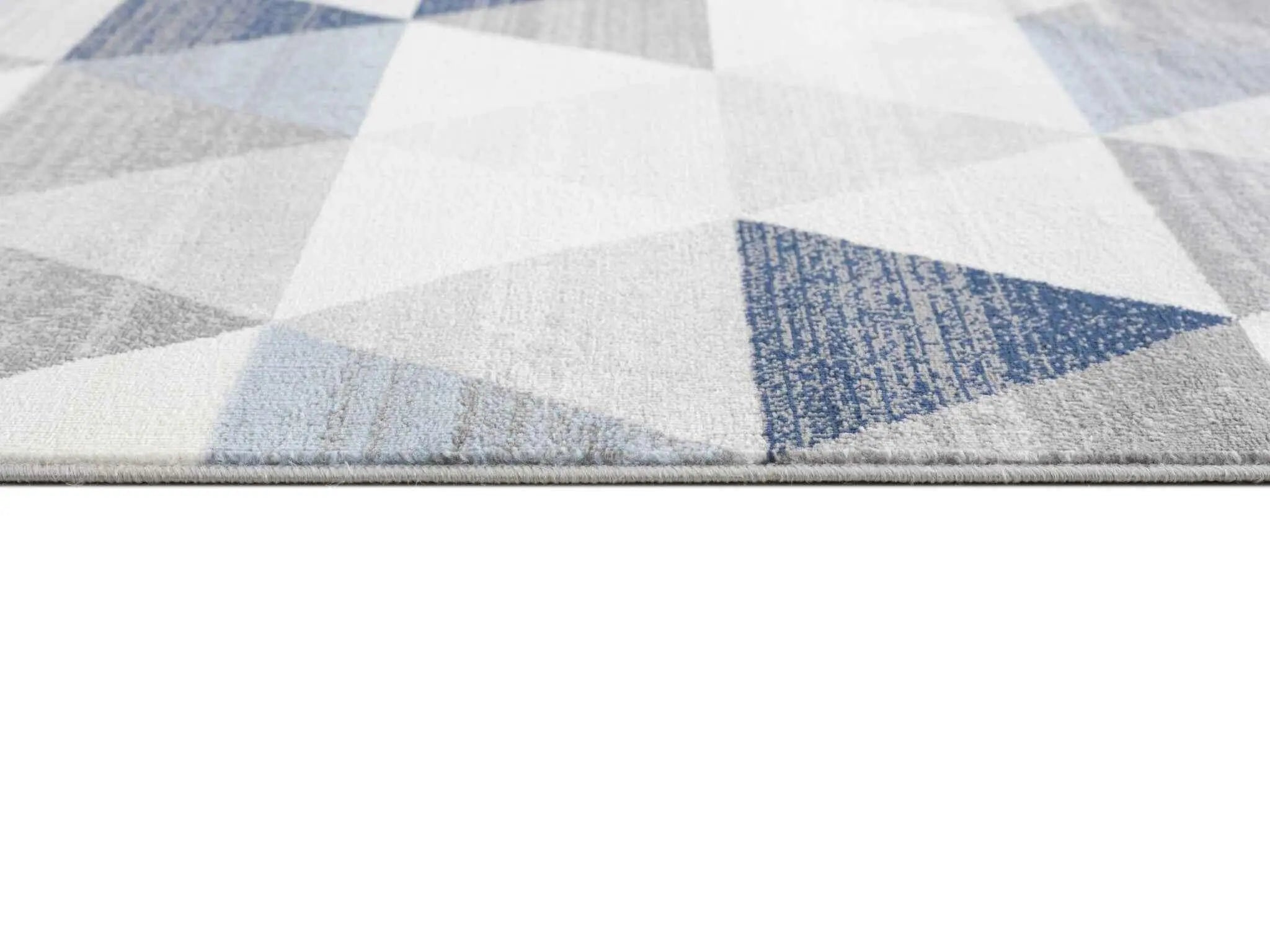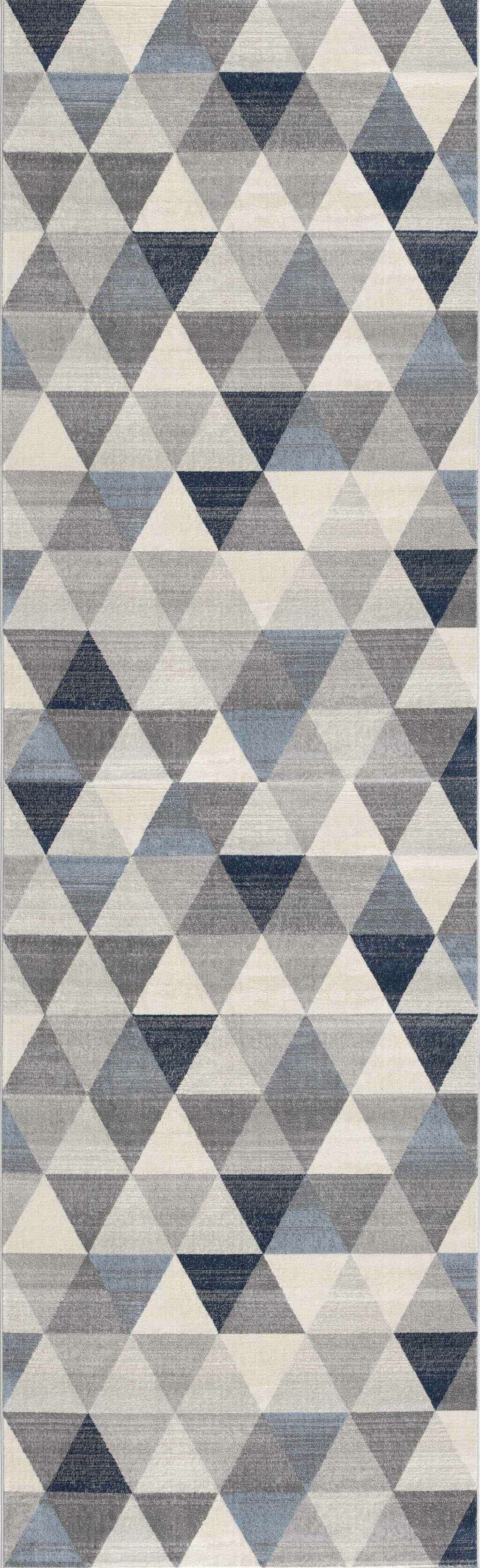 Showing off playfully textured patterns in vivid hues, this Navy Blue Geometric Diamond Runner Rug creates a perfect balance of style and sophistication to stand out in any modern living space. The skillful use of navy blue, ivory, and shades of gray to create two-toned diamond patterns in contrasting hues add up to a visually hypnotizing effect. The low pile construction offers a clean look with a smooth surface texture to experience a layer of luxury under your feet. Upholding the excellence of Turkish craftsmanship, this rug is made of 100% polypropylene that is inherently stain-resistant and easy to clean with enhanced durability to stand up to the elements of busy areas at home. The compelling look and classy color palette make this runner rug a worthy addition to spruce up your contemporary interior. 96” x 27” x 0.4”