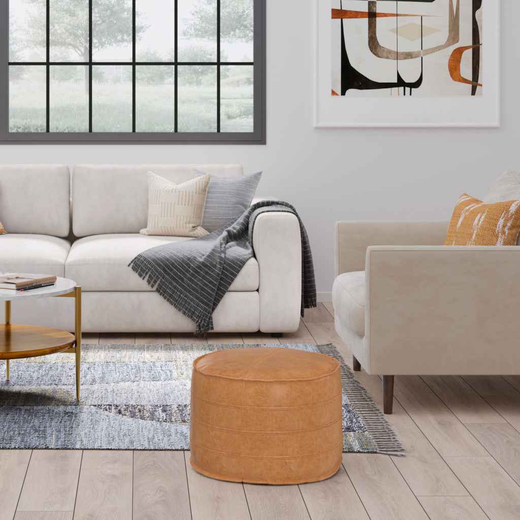 20" Brown Faux Leather Round Pouf Ottoman 本文へスキップ