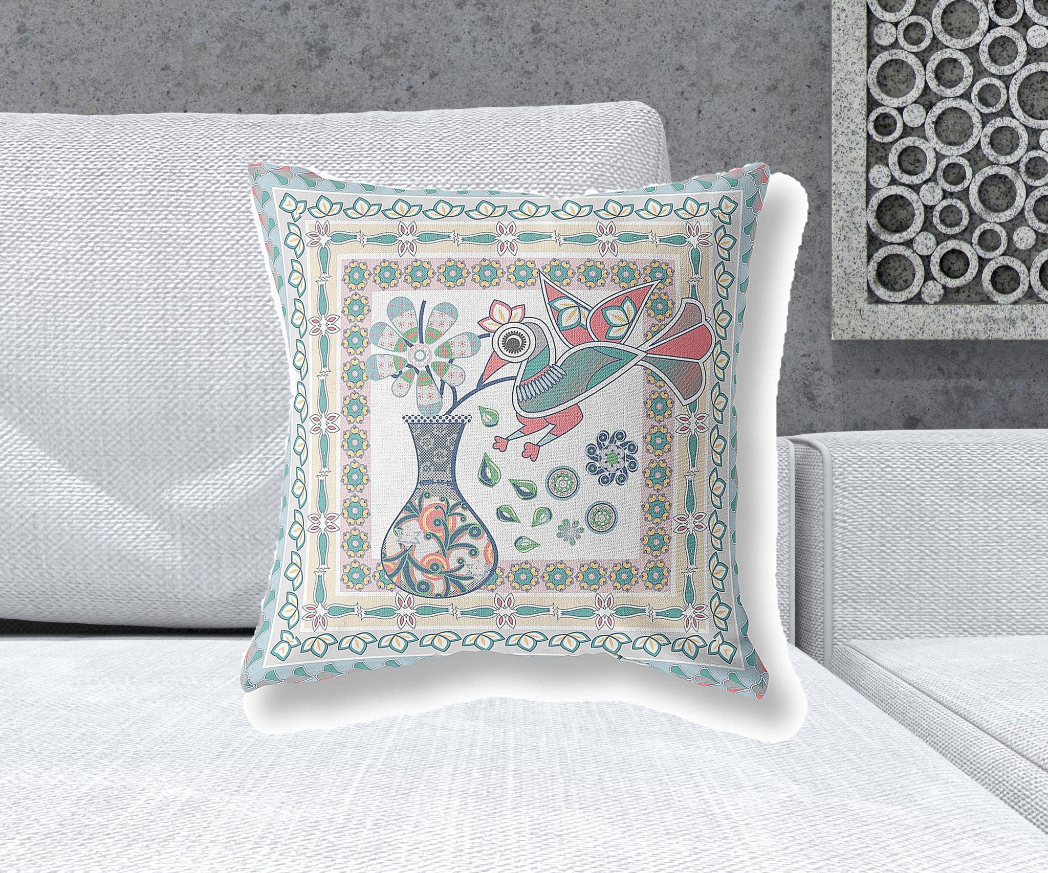 This 20" x 20" white and blue bird blown seam floral indoor outdoor throw pillow will add a beautiful decorative accent to your decor. This soft and durable decorative pillow is expertly made of high grade, long lasting broadcloth in a white and blue coloration. A great decorative accessory to decorate indoors or out. Great to use on its own or mix with other decorations for the perfect look. 5" H x 20" W x 20" D