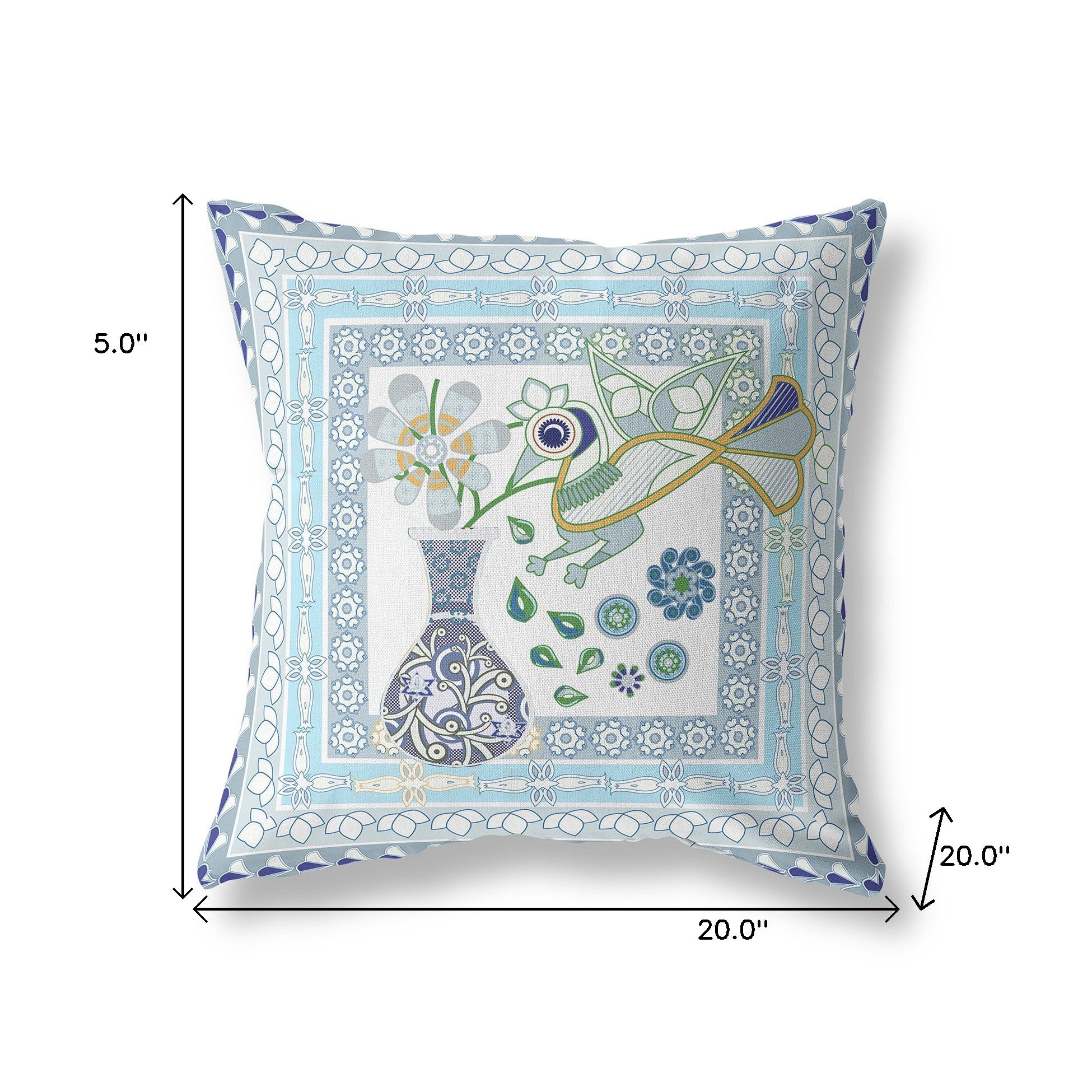 20" X 20" White And Grey Bird Blown Seam Floral Indoor Outdoor Throw Pillow