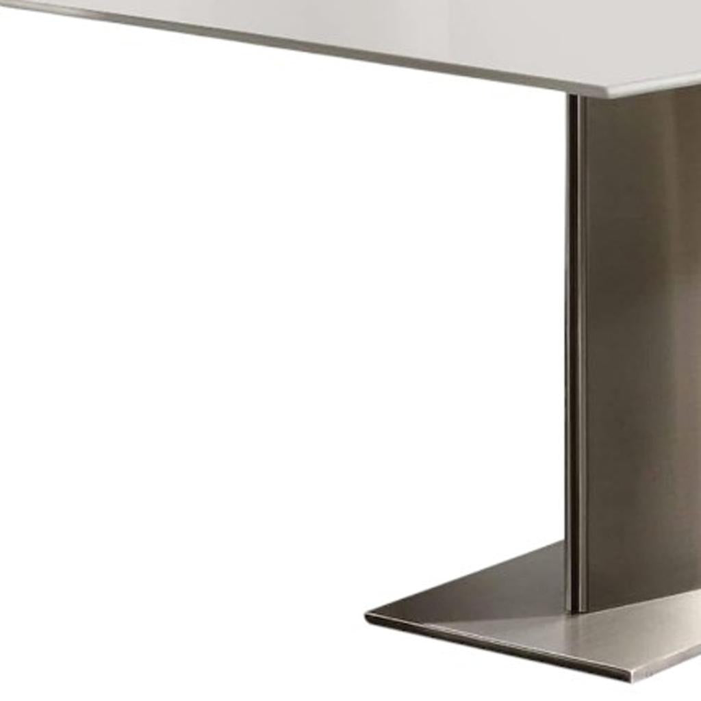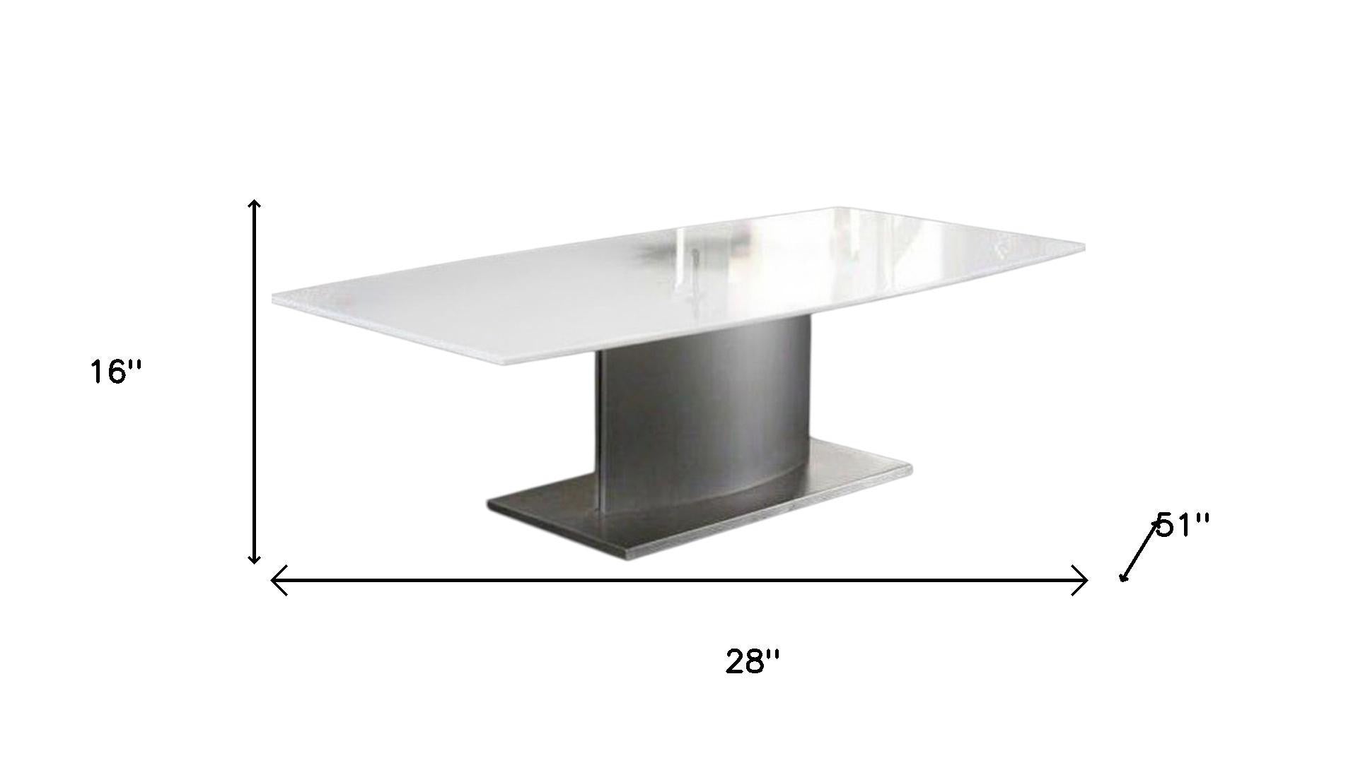 28" White And Silver Genuine Marble And Metal Coffee Table