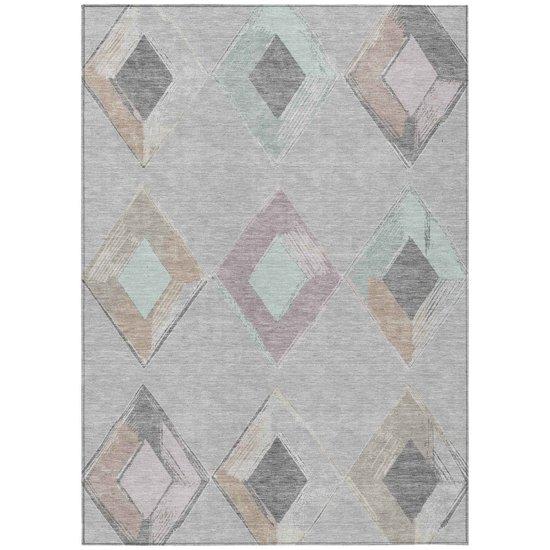 3' X 5' Gray Beige And Taupe Geometric Washable Indoor Outdoor Area Rug