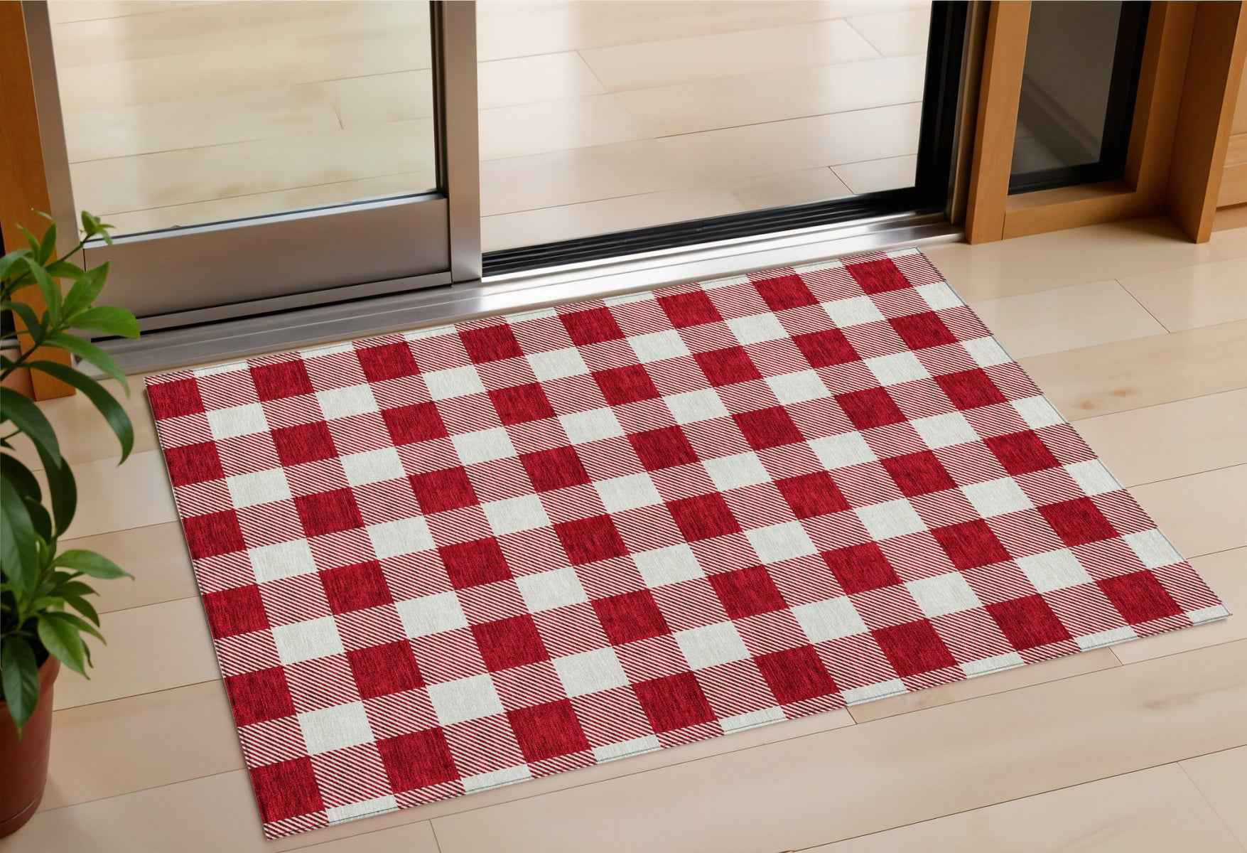 This 3-foot x 5-foot red and ivory plaid washable indoor outdoor area rug, is a great way to add warmth to a room. This rectangle shaped rug features a plaid design that will work well both indoors or out. A classic shape marries with good looking design for your living room, hall, bedroom, porch, patio, or poolside. Ideal for outdoor spaces or high traffic areas with kids and pets, this rug is made from heavy duty polyester that is stain resistant to help repel water, dirt, and stains. Makes a great way to dress up your patio, porch, or poolside, but also works well as a durable and easy to maintain option in the kitchen, family room, or mudroom. 36-inch h x 60-inch w x 0.19-inch d.