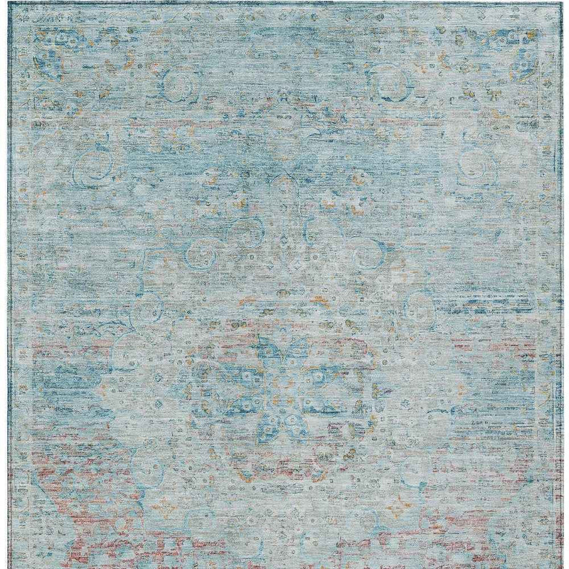 3' X 5' Sky Blue And Blush Medallion Washable Indoor Outdoor Area Rug