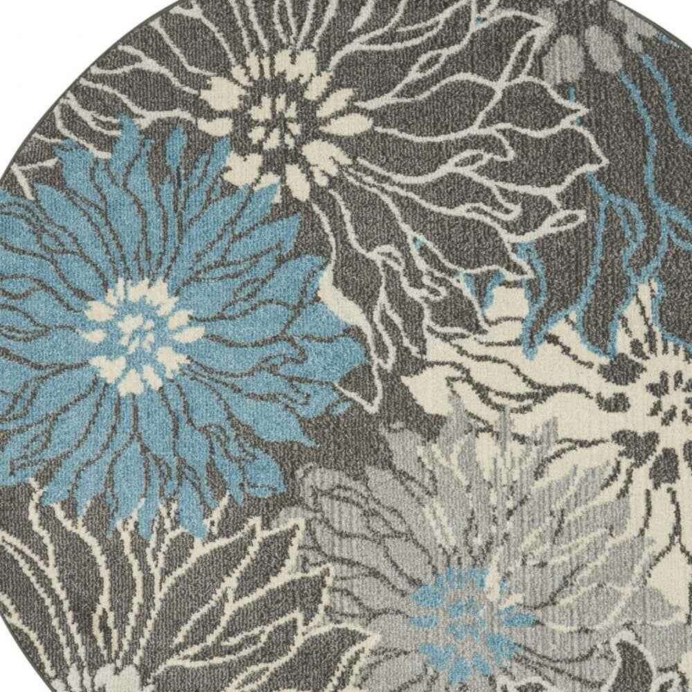 4' Blue And Gray Round Floral Power Loom Area Rug