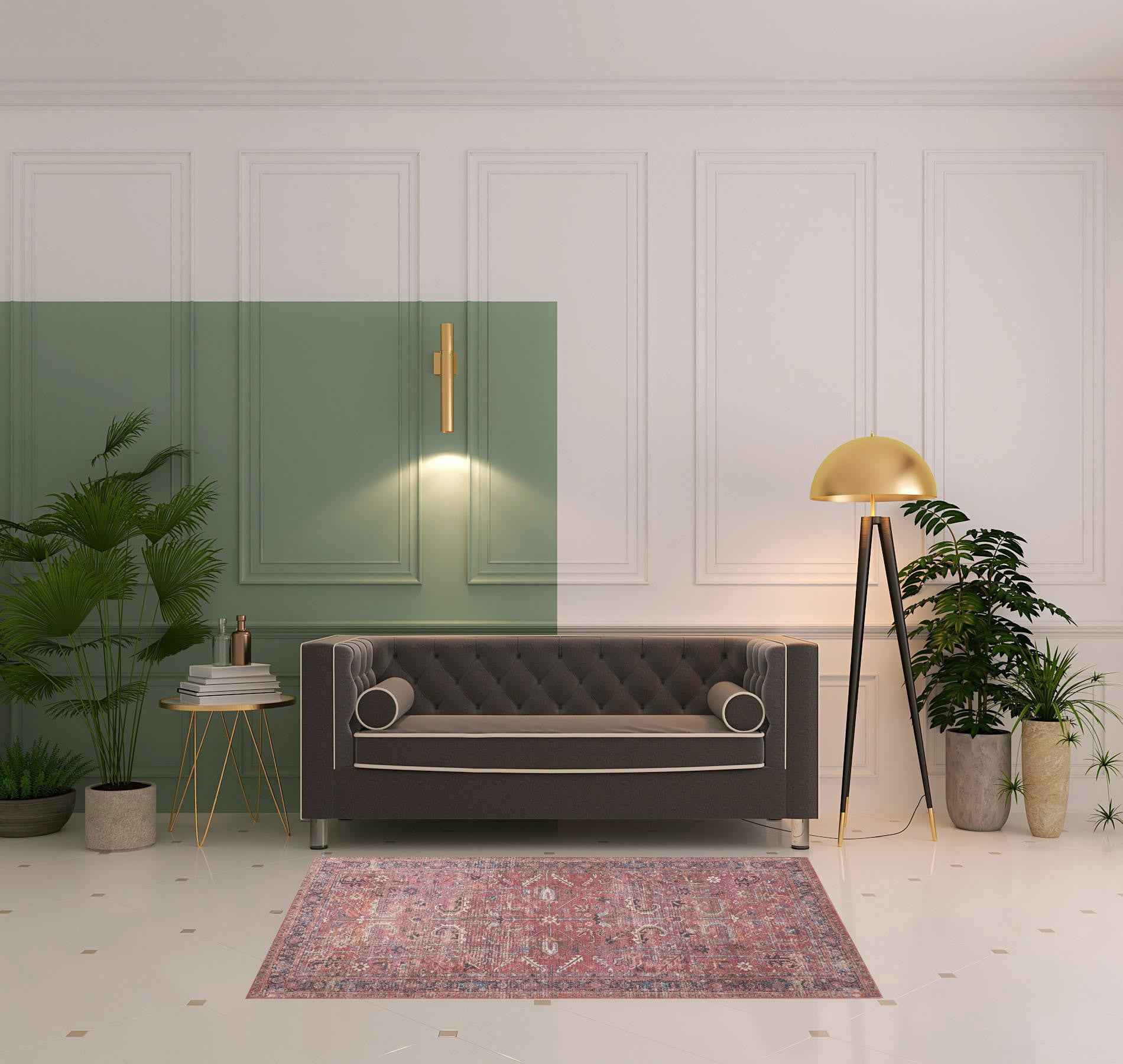 4' X 6' Brick Oriental Power Loom Distressed Washable Area Rug