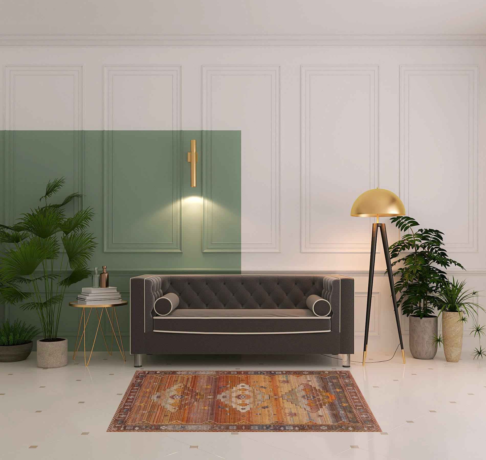 Add great coloration and comfortable texture to your space with this 4' x 6' brown southwestern area rug. This rectangle shaped rug features a southwestern design in brown to give it visual interest. A classic shape marries with good looking design for your space Made in Turkey, this rug offers high quality combined with good looking designer sensibilities. Place this area rug against a hardwood or tile floor and it will enliven your living space with style and sophistication. 0.25" H x 48" W x 72" D