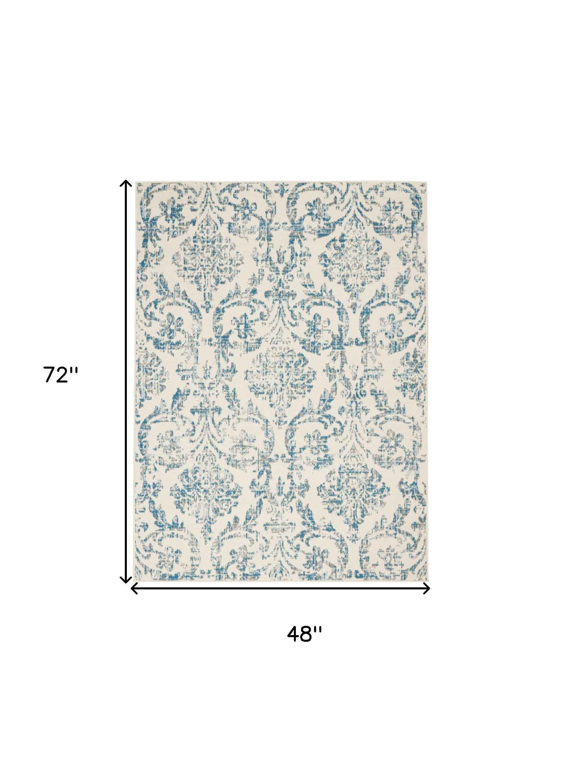 Add great coloration and comfortable texture to your space with this 4' x 6' cream damask power loom area rug. This rectangle shaped rug features a damask design in cream to give it visual interest. A classic shape marries with good looking design for your space The coloring of this rug adds a delightfully neutral tone to your home and will easily match with most any decor. This superior Turkish rug represents the highest quality and is built to last. Place this area rug against a hardwood or tile floor and it will enliven your living space with style and sophistication. .50" H x 48" W x 72" D