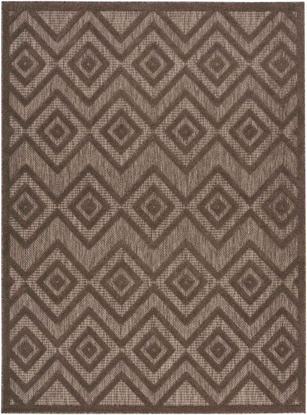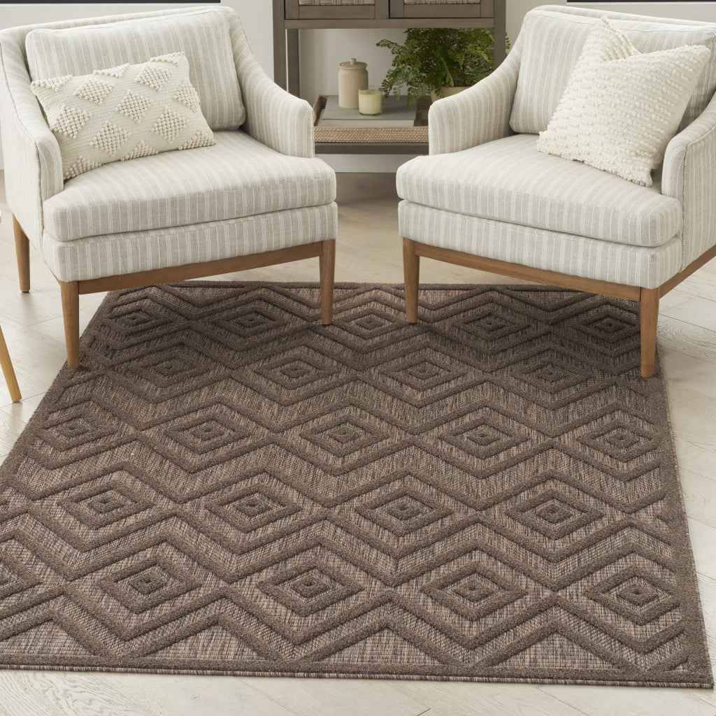 Add great coloration and comfortable texture to your space with this 4-foot x 6-foot dark brown and light brown geometric indoor outdoor area rug. This rectangle shaped rug features a geometric design that will work well both indoors or out. A classic shape marries with good looking design for your living room, hall, bedroom, porch, patio, or poolside. Versatile in use, durable, and easy to maintain, this rug is an ideal solution to add a decorative and inviting touch to your indoor or outdoor space. 48-inch h x 72-inch w x 0.3-inch d.