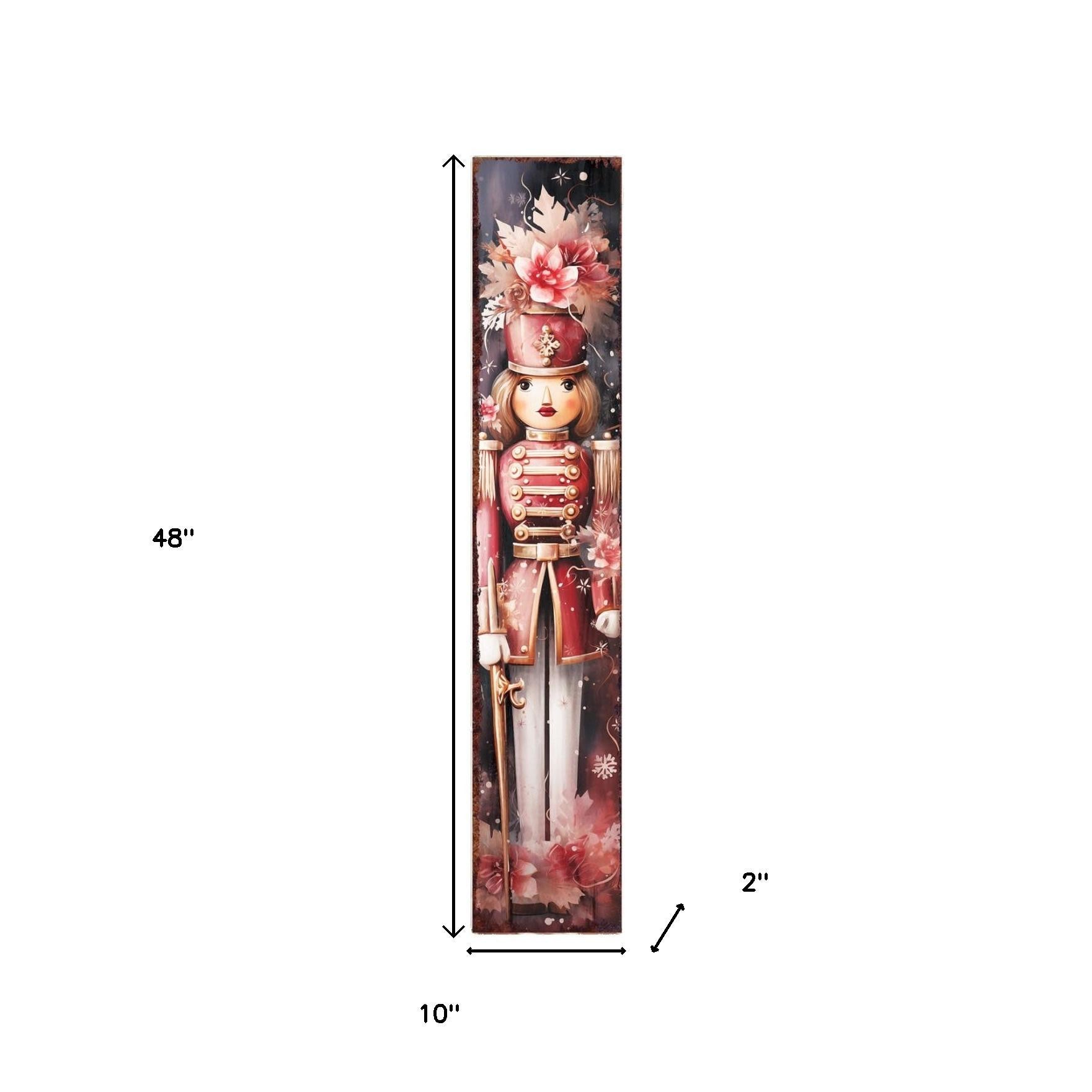 48" Pink And White Christmas Female Nutcracker Solid Wood Porch Sign