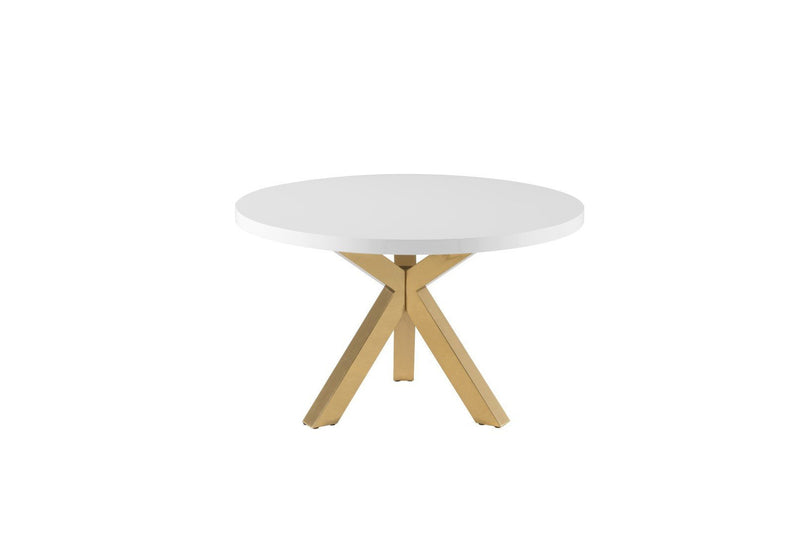 48" White and Gold Wood and Metal Cross Leg Base Round Top Dining Table