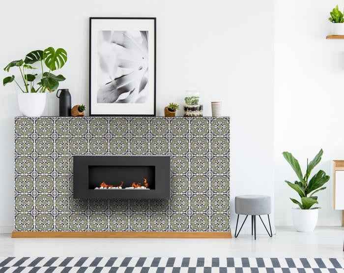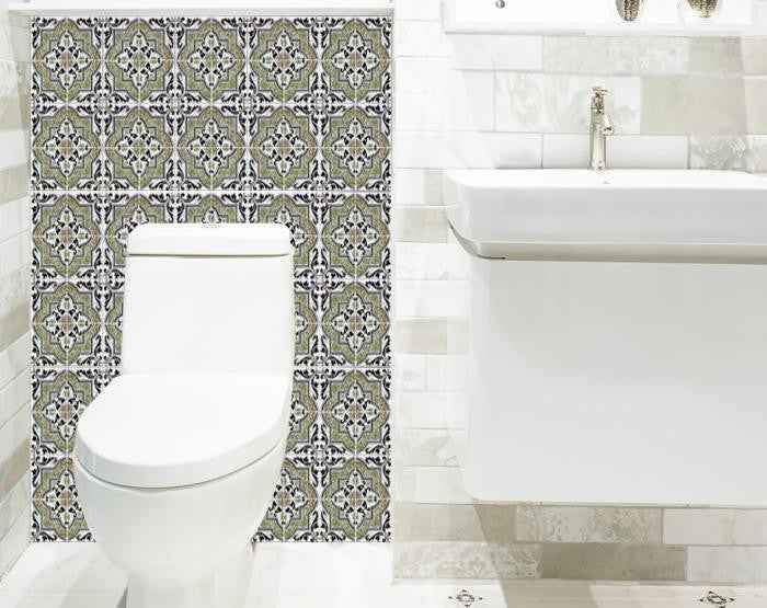 The possibilities are endless with these 5" x 5" Vintage Sage Medallion Peel and Stick Removable Tile stickers. These fabulous peel and stick tiles will add sophisticated flair and design to your kitchen backsplash, fireplace mantel, stair treads, half wall, bathroom or nook. These 5" square tile stickers are an easy, no mess solution to complete a personalized and colorful room makeover. Easy to apply on any clean dry flat surface, and easy to remove. Multi use and multi-room appeal make this design option is perfect for renters, landlords, college students and homeowners alike. Peel and stick tile decals make it easy to turn your space into a home. Removable without damage to surfaces. One kit contains 24 stickers. Kit includes a single repeating design.