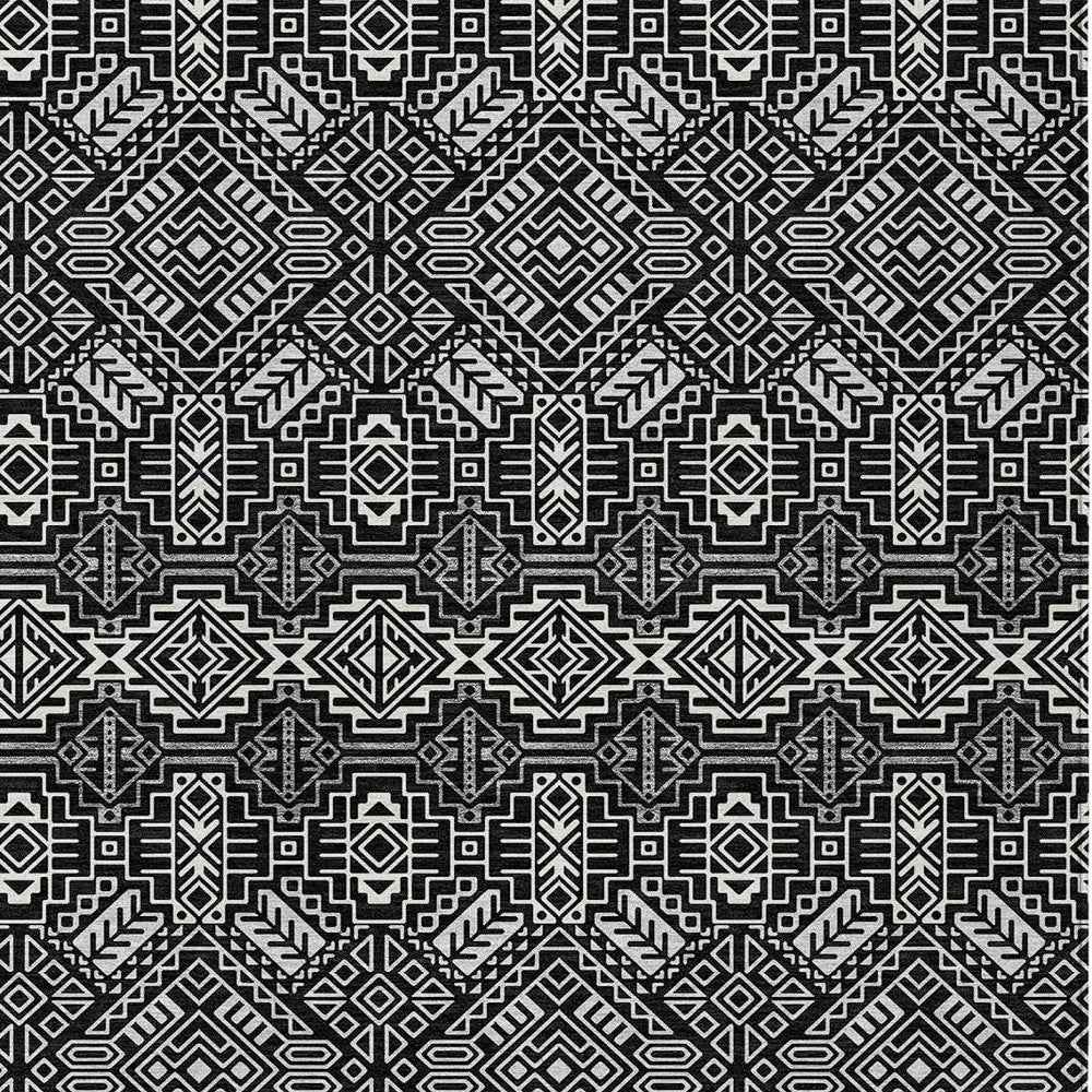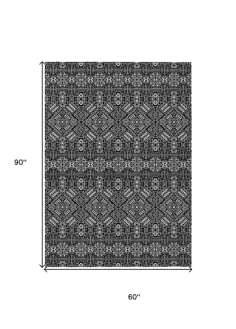 5' X 8' Black And Ivory Tribal Washable Indoor Outdoor Area Rug
