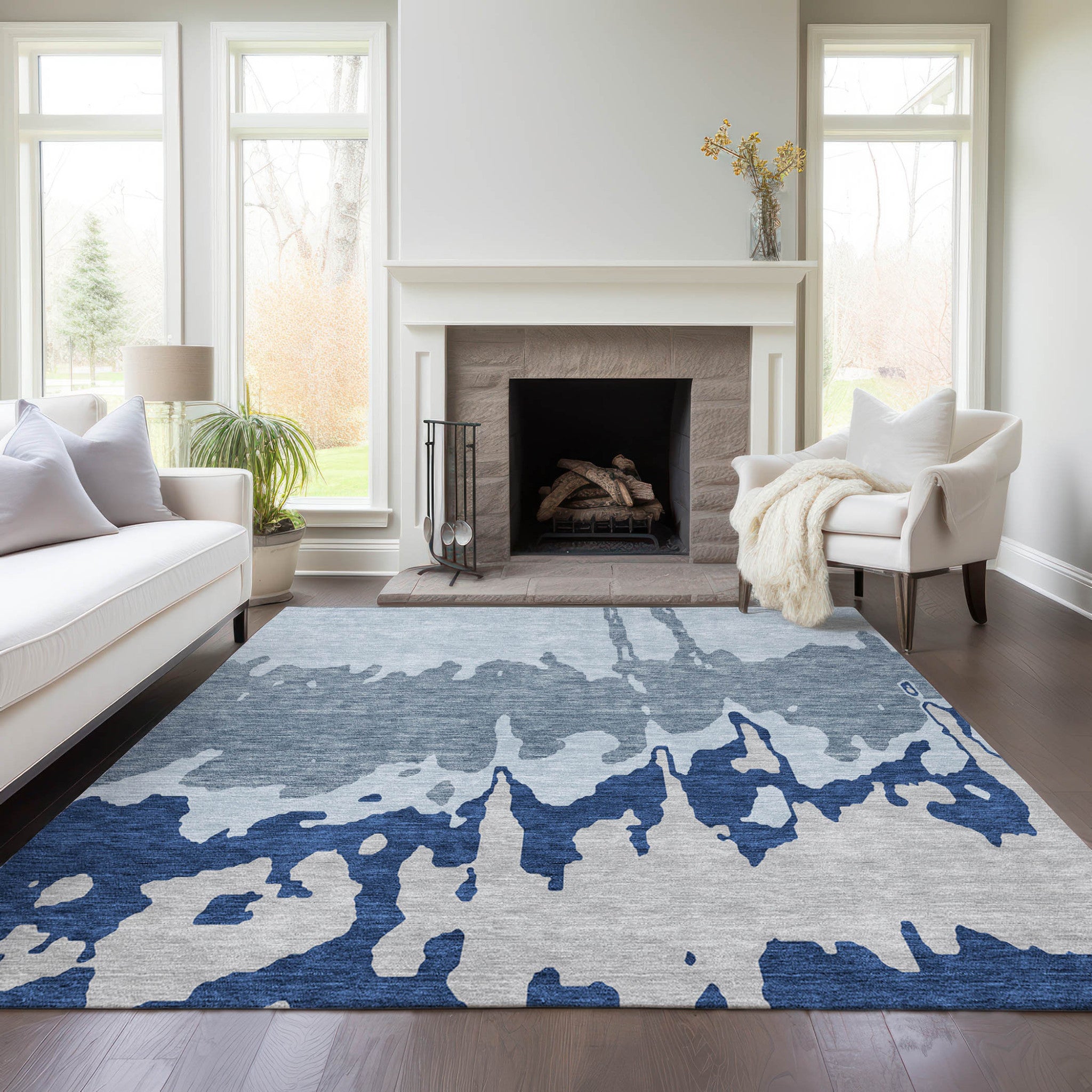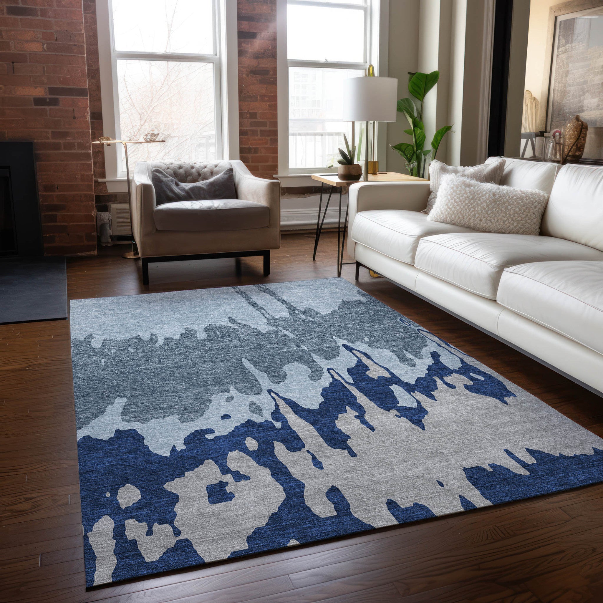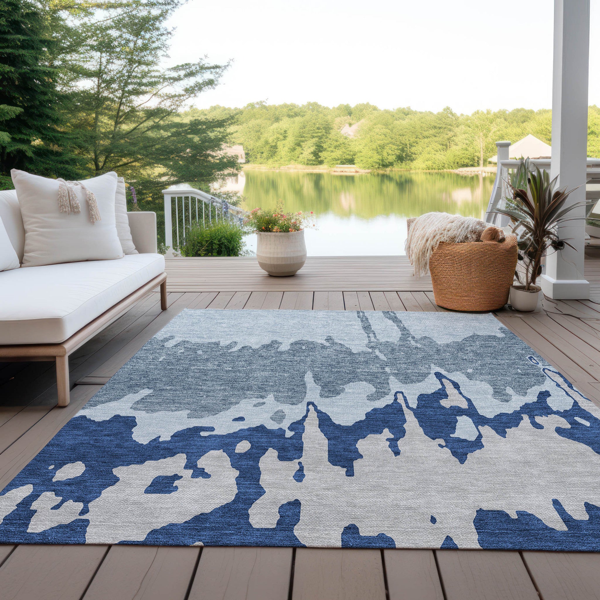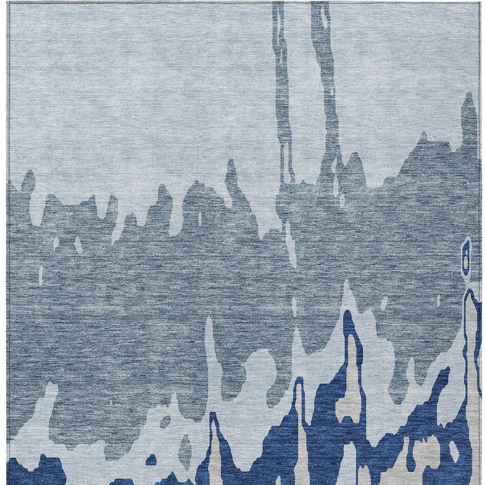 5' X 8' Sky Blue And Denim Blue Abstract Washable Indoor Outdoor Area Rug 本文へスキップ