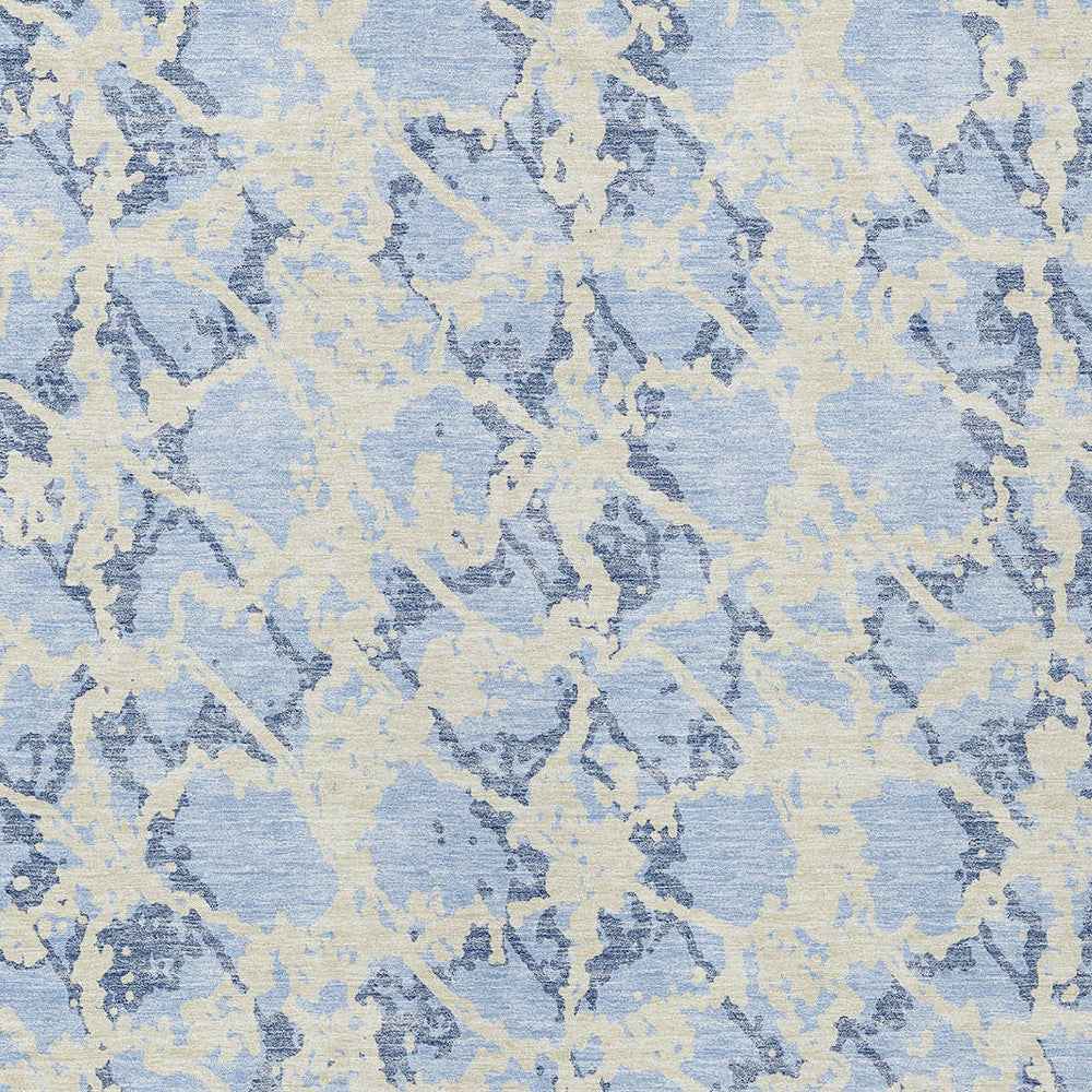 5' X 8' Sky Blue And Ivory Abstract Washable Indoor Outdoor Area Rug