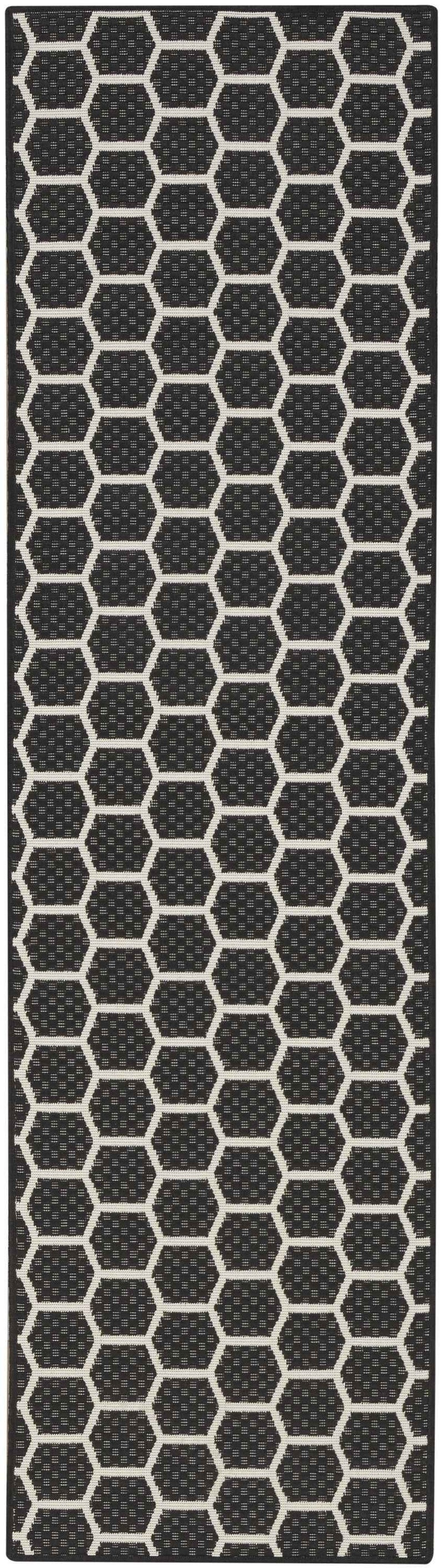 6' Black And Ivory Geometric Indoor Outdoor Area Rug