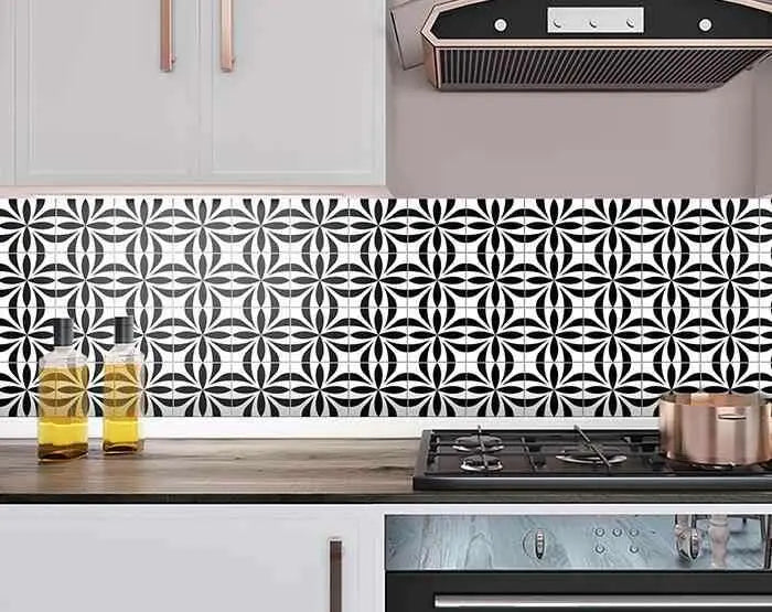6" X 6" Black and White Colla Peel and Stick Removable Tiles