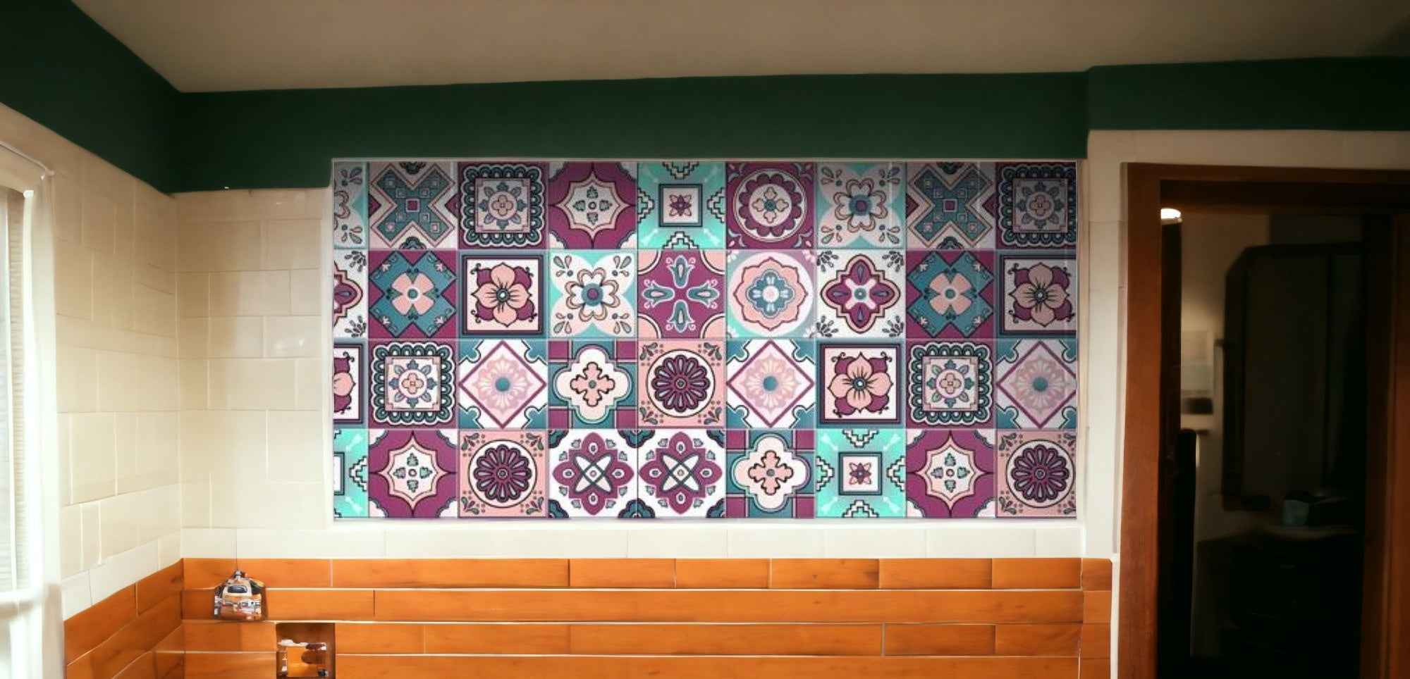 6" X 6" Vintage Turq Blush And Mauve Peel And Stick Removable Tiles