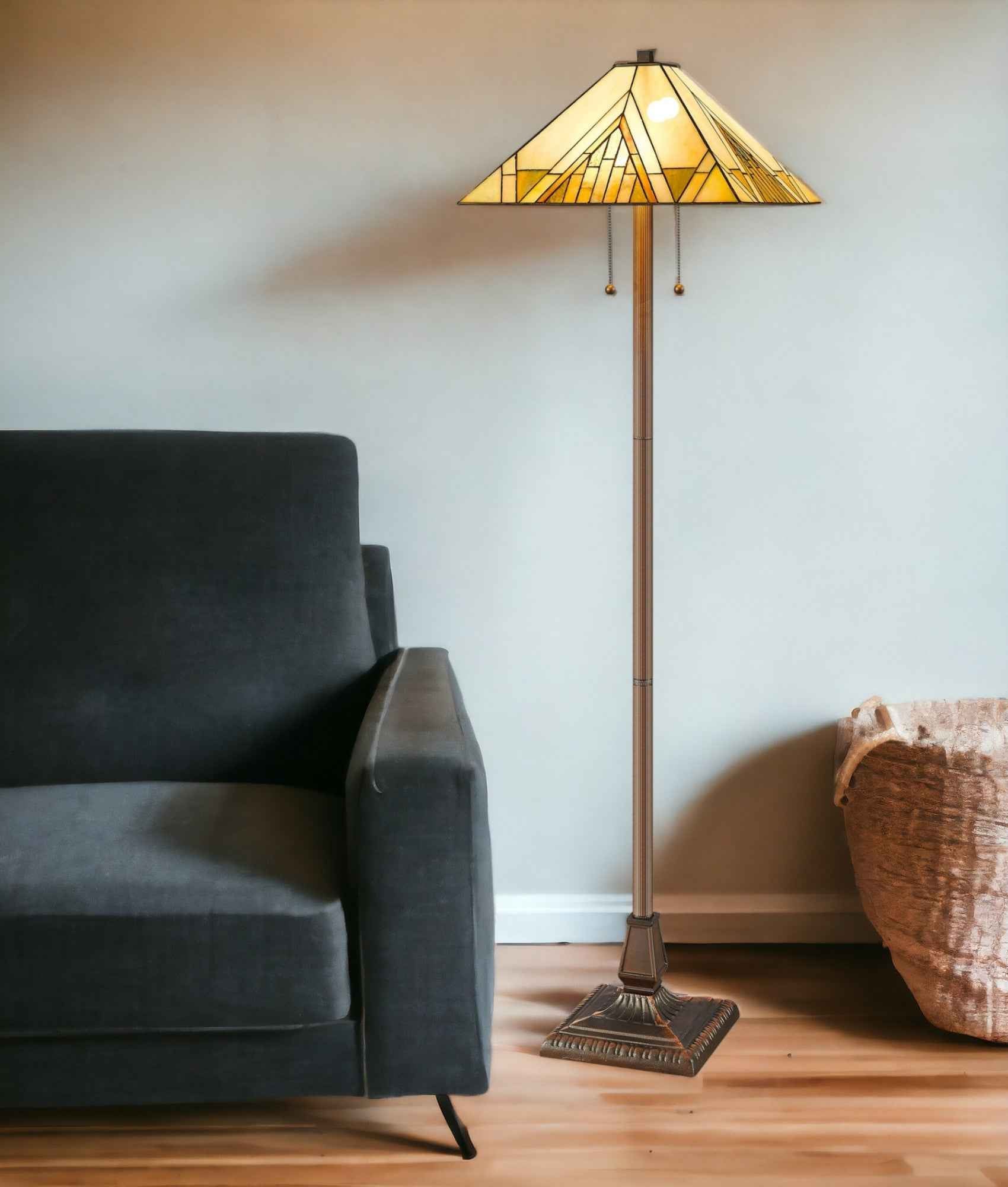 62" Brown Two Light Beige And Brown Geometric Stained Glass Floor Lamp 本文へスキップ