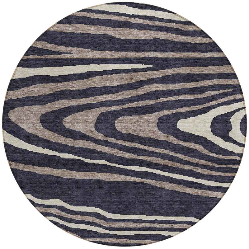 8' Black Taupe And Beige Round Faux Bois Washable Indoor Outdoor Area Rug