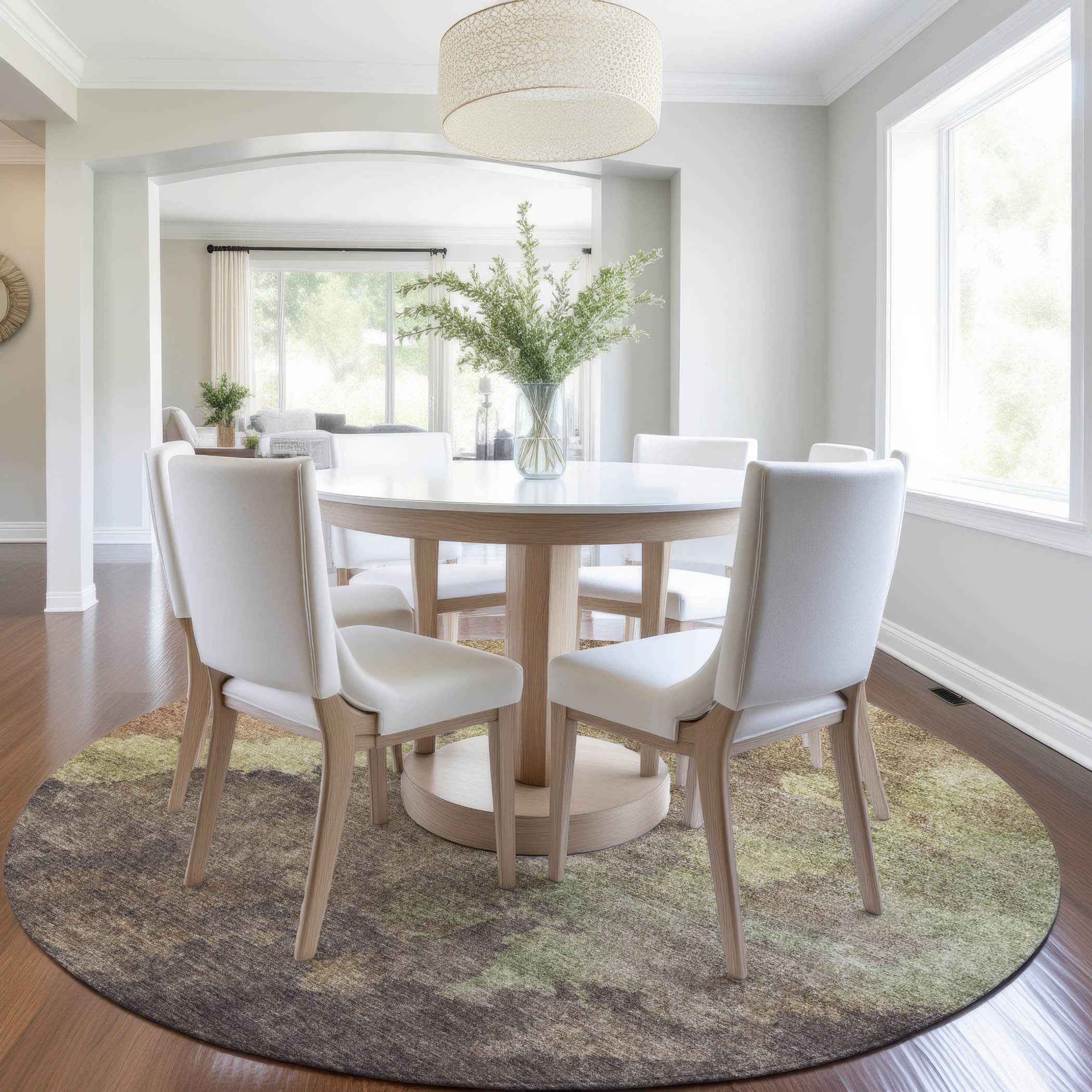 8' Brown And Fern Green Round Abstract Washable Indoor Outdoor Area Rug
