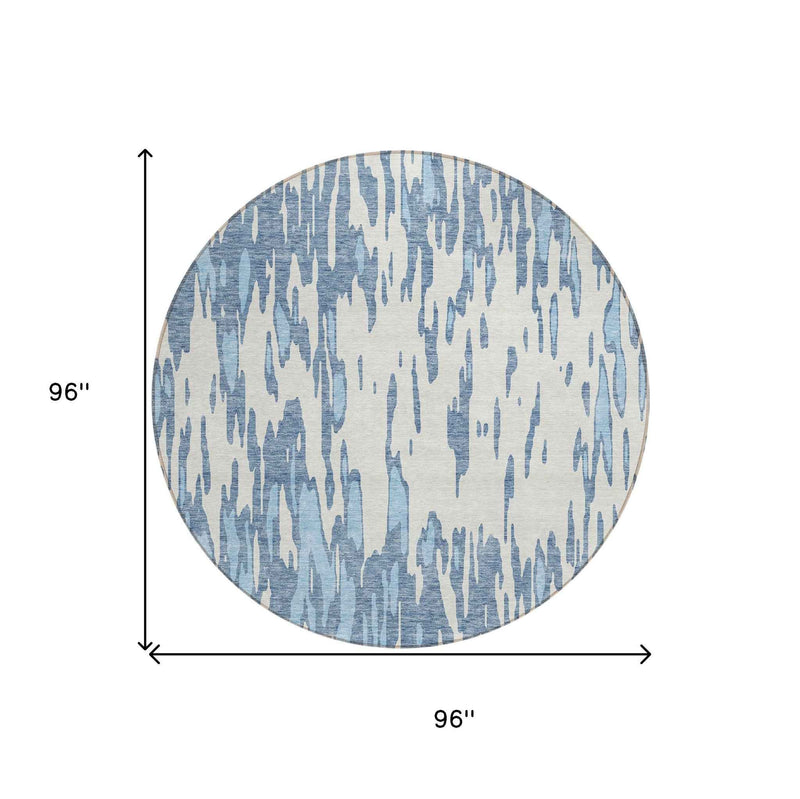 8' Denim Blue And Ivory Round Abstract Washable Indoor Outdoor Area Rug