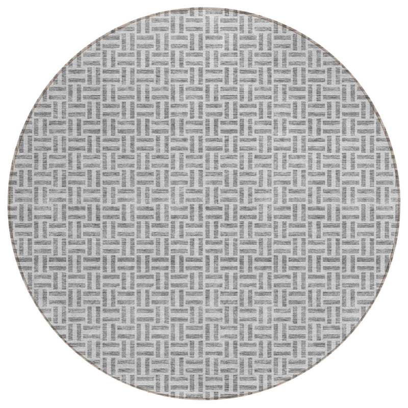 8' Gray And Silver Round Geometric Washable Indoor Outdoor Area Rug