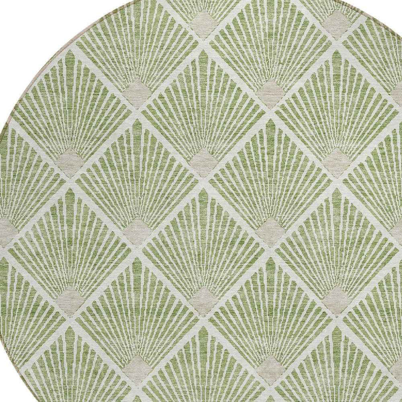 8' Green Beige And Ivory Round Geometric Washable Indoor Outdoor Area Rug