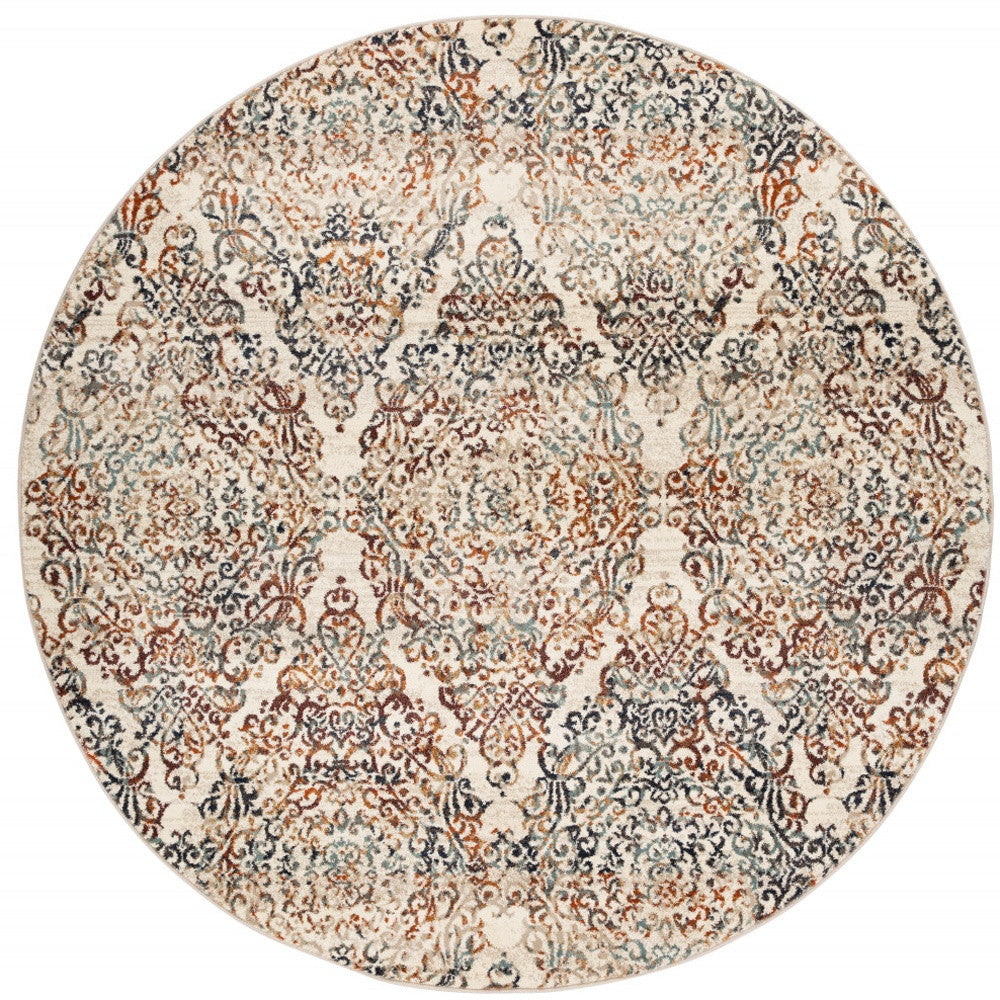 8' Ivory Round Oriental Dhurrie Area Rug