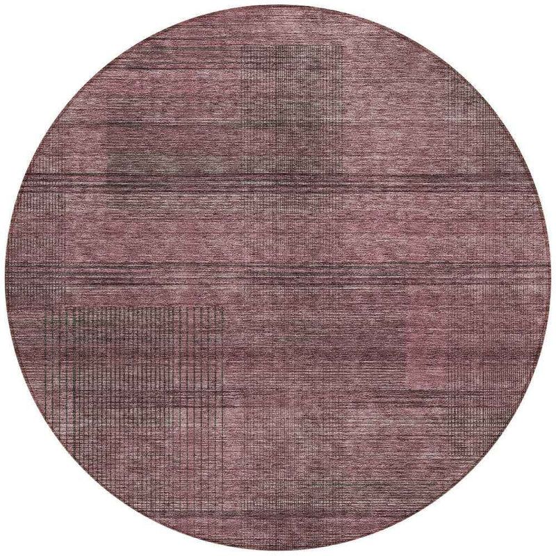 8' Merlot And Gray Round Striped Washable Indoor Outdoor Area Rug