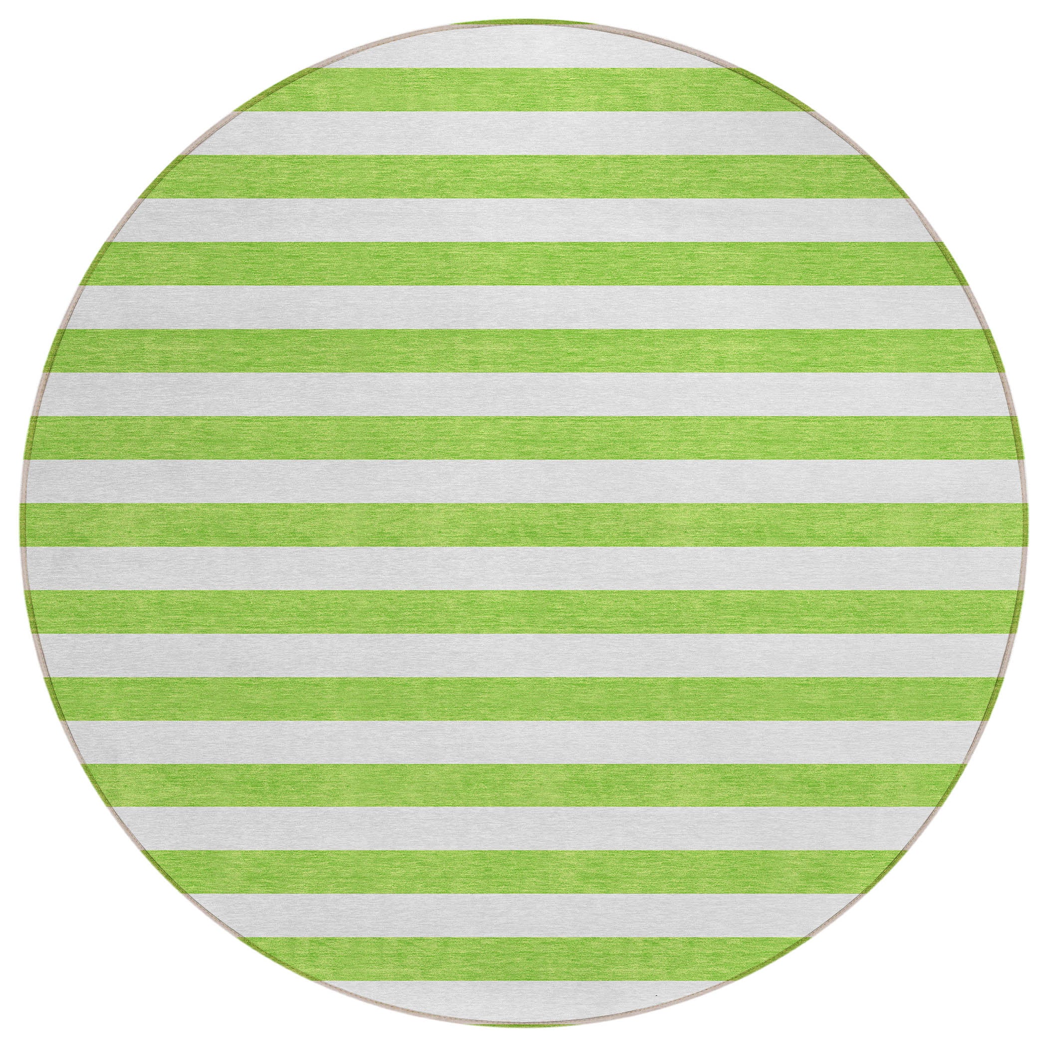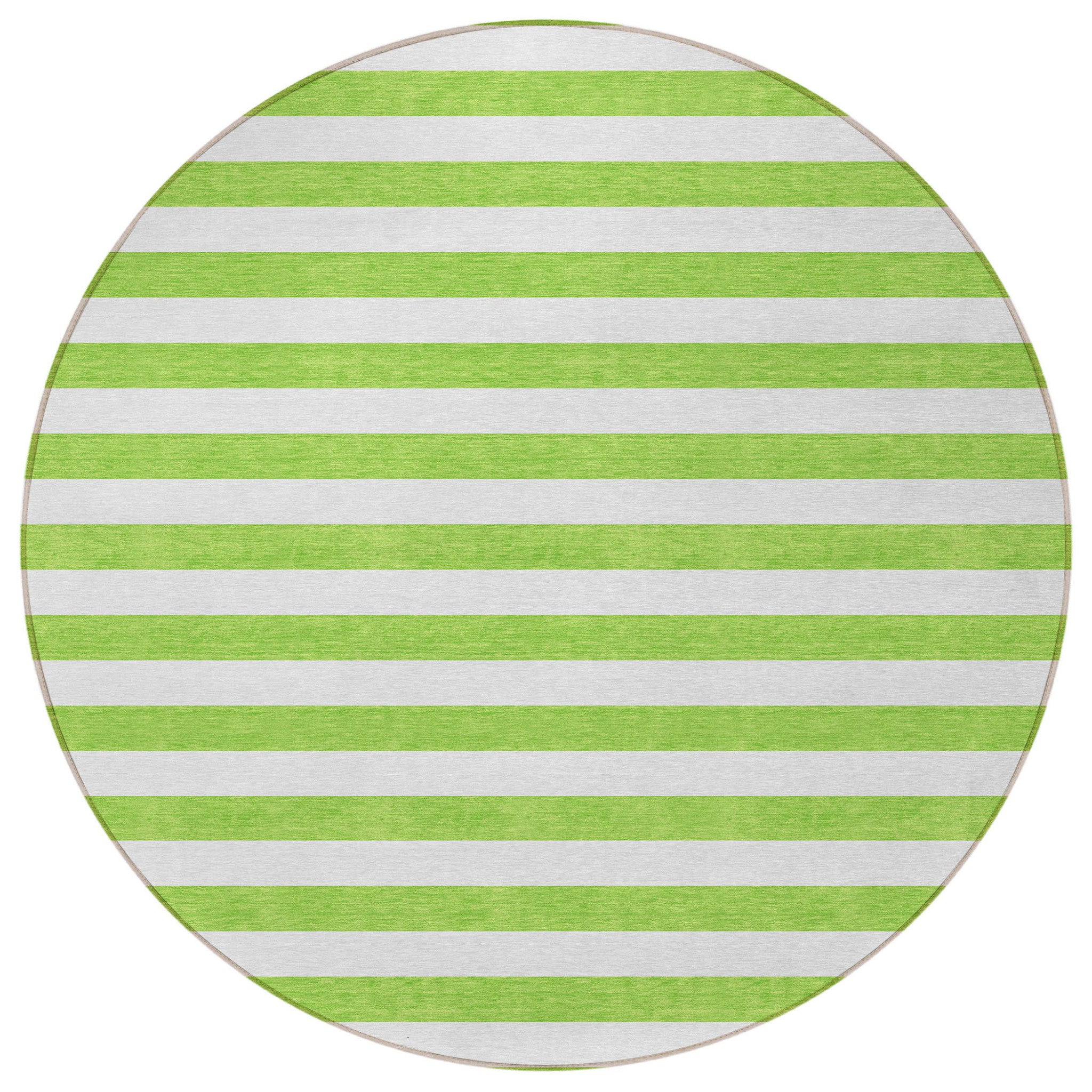 Add some artistry to your room with this 8-foot round green and white round striped washable stain resistant non skid indoor outdoor area rug. This geometric round shaped rug features a striped pattern in green and white that combines a good looking print with a unique and updated shape. The mix of shape, color, and design gives this rug refreshing visual interest. Ideal for spaces with kids and pets, this rug is stain resistant to help repel stains and spilled liquids. Area rugs help to give warmth and sense of home to your space. 96-inch H x 96-inch W x 0.19-inch D