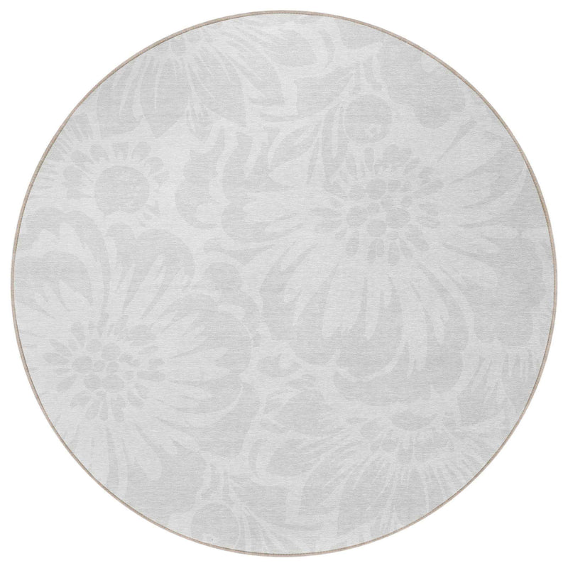 Set an inviting tone in your space with this 8-foot round ivory round floral washable stain resistant non skid indoor outdoor area rug. This geometric round shaped rug features a floral pattern in ivory that combines a good looking print with a unique and updated shape. The mix of shape, color, and design gives this rug refreshing visual interest. Ideal for spaces with kids and pets, this rug is stain resistant to help repel stains and spilled liquids. Place this area rug against a hardwood or tile floor and it will enliven your living space with style and sophistication. 96-inch H x 96-inch W x 0.19-inch D