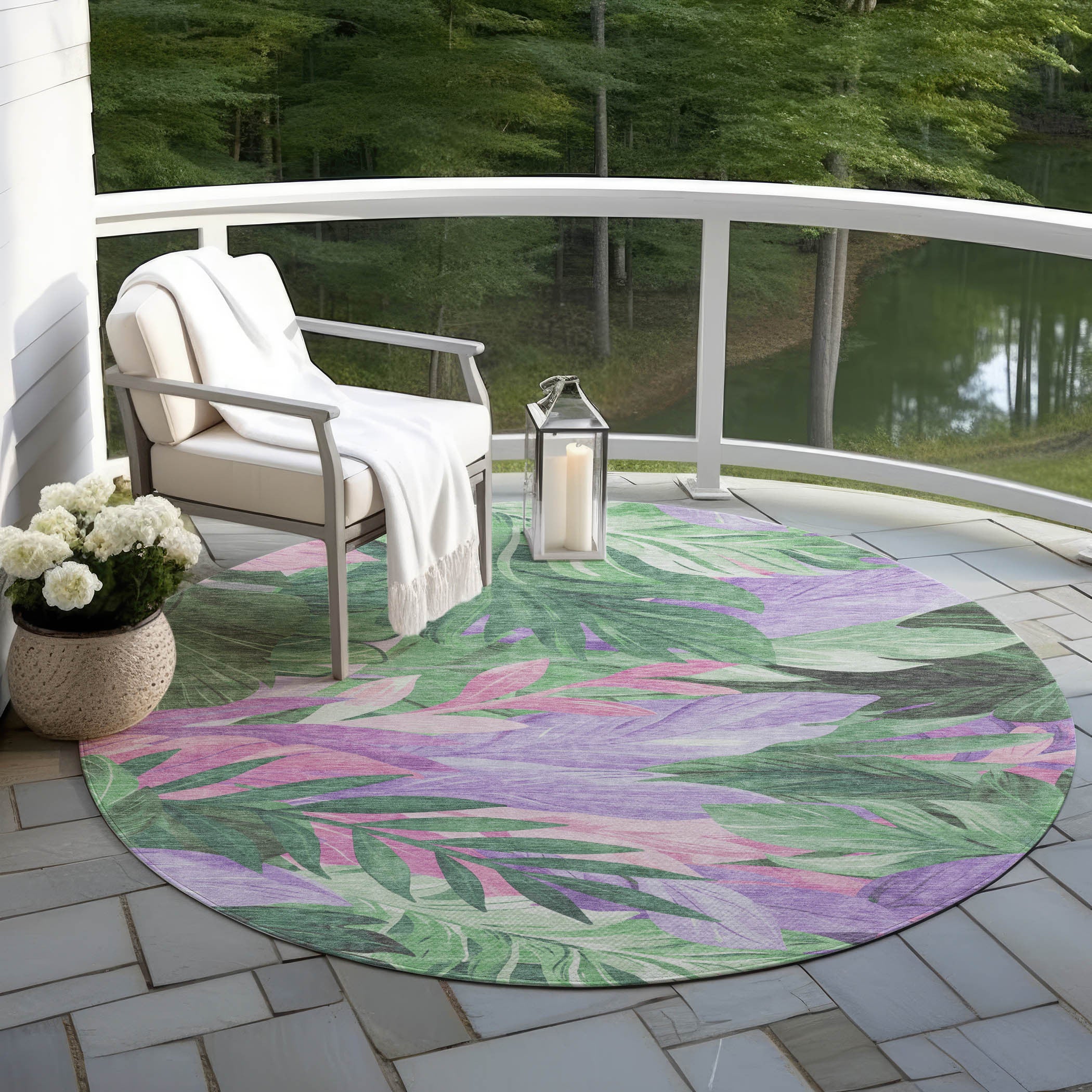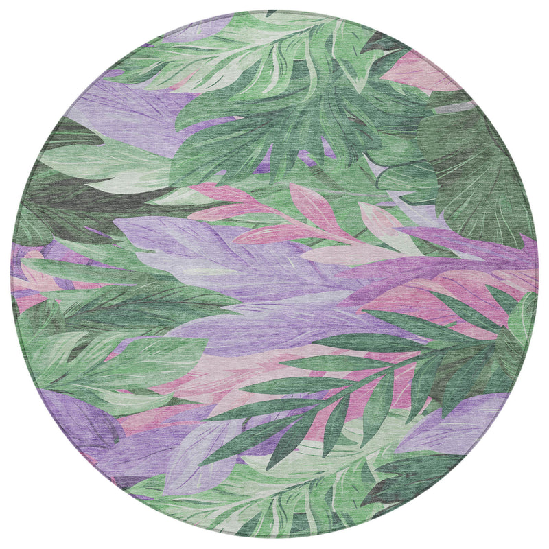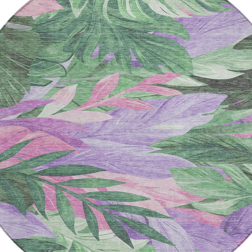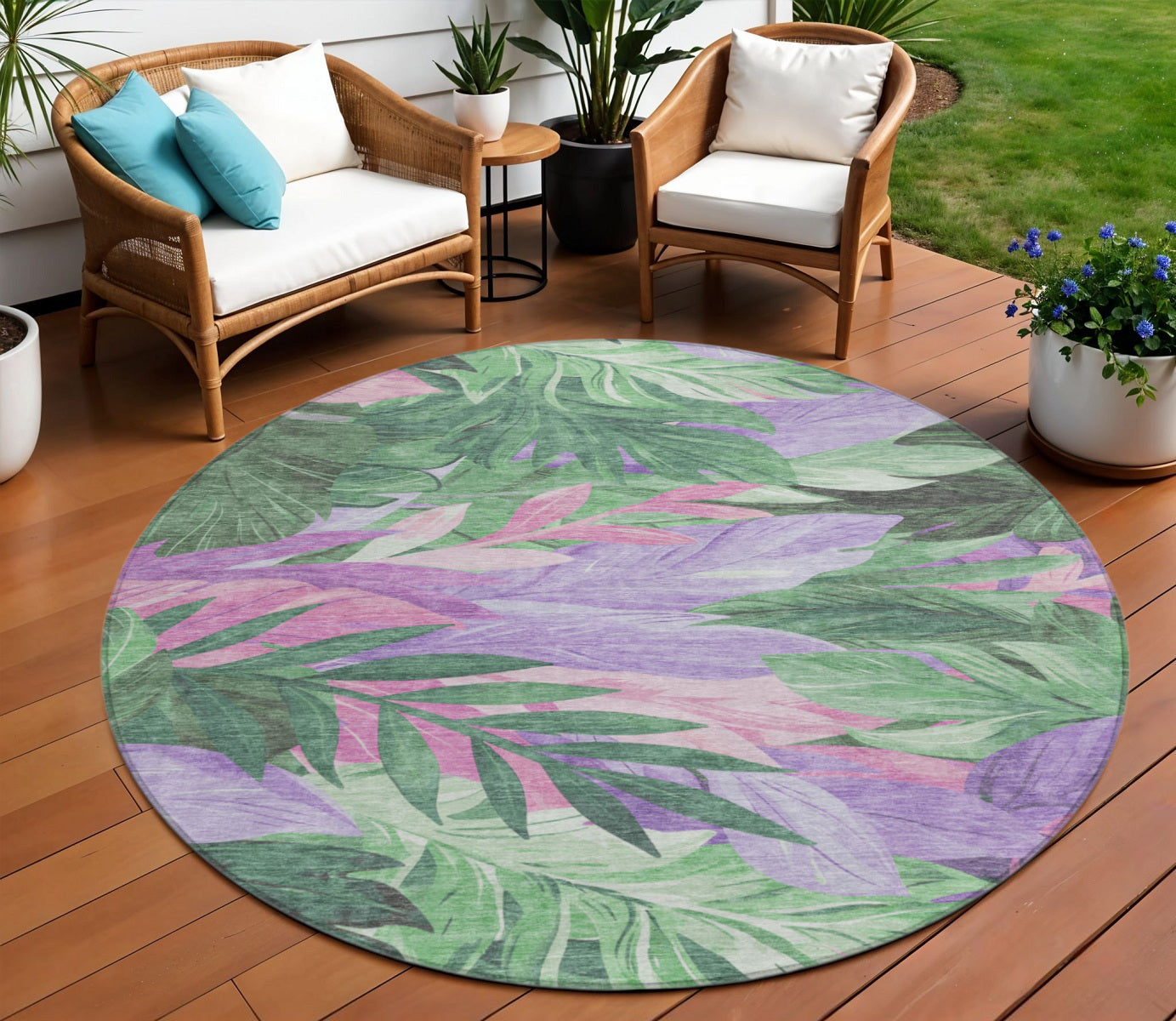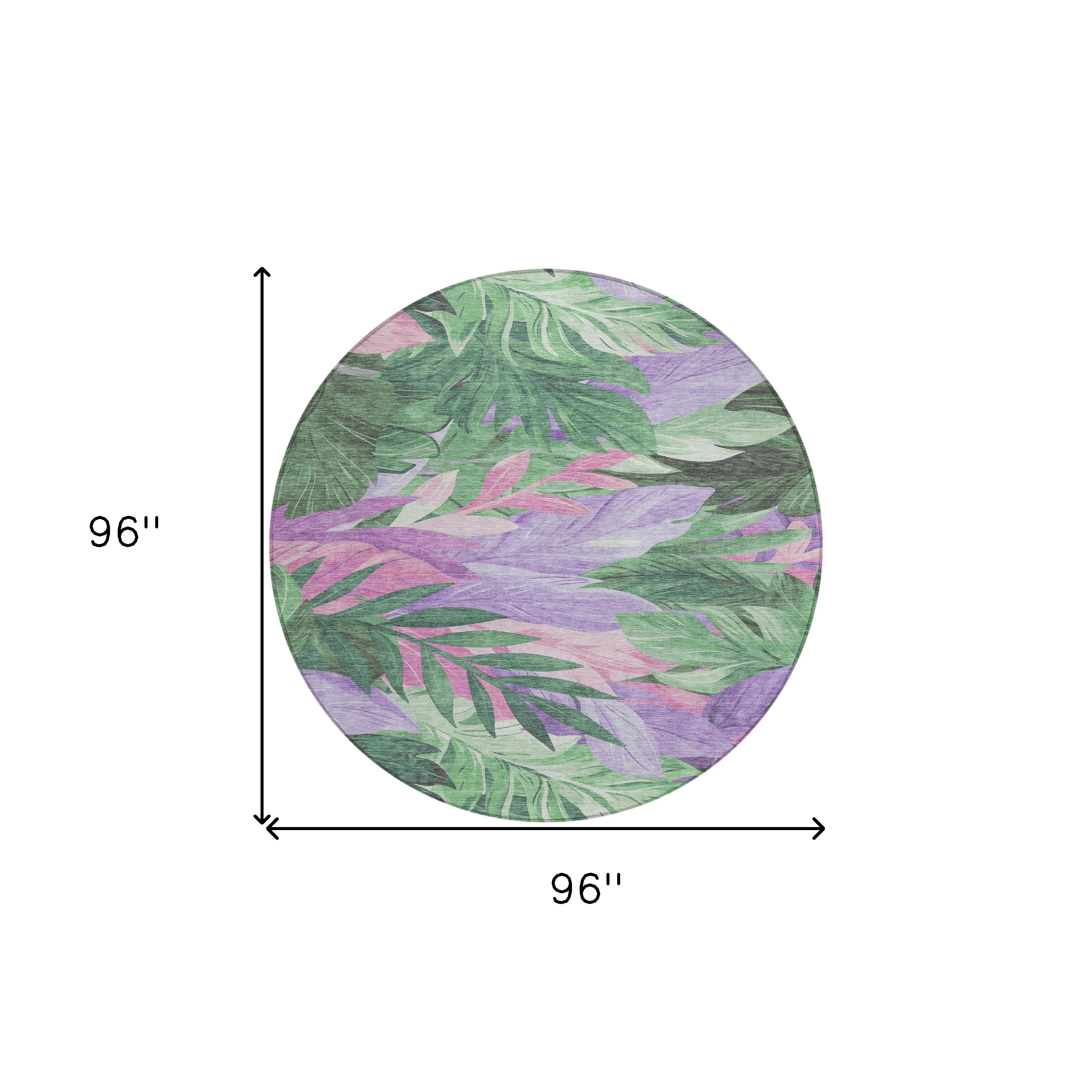 8' Sage And Mint Green Round Floral Washable Indoor Outdoor Area Rug