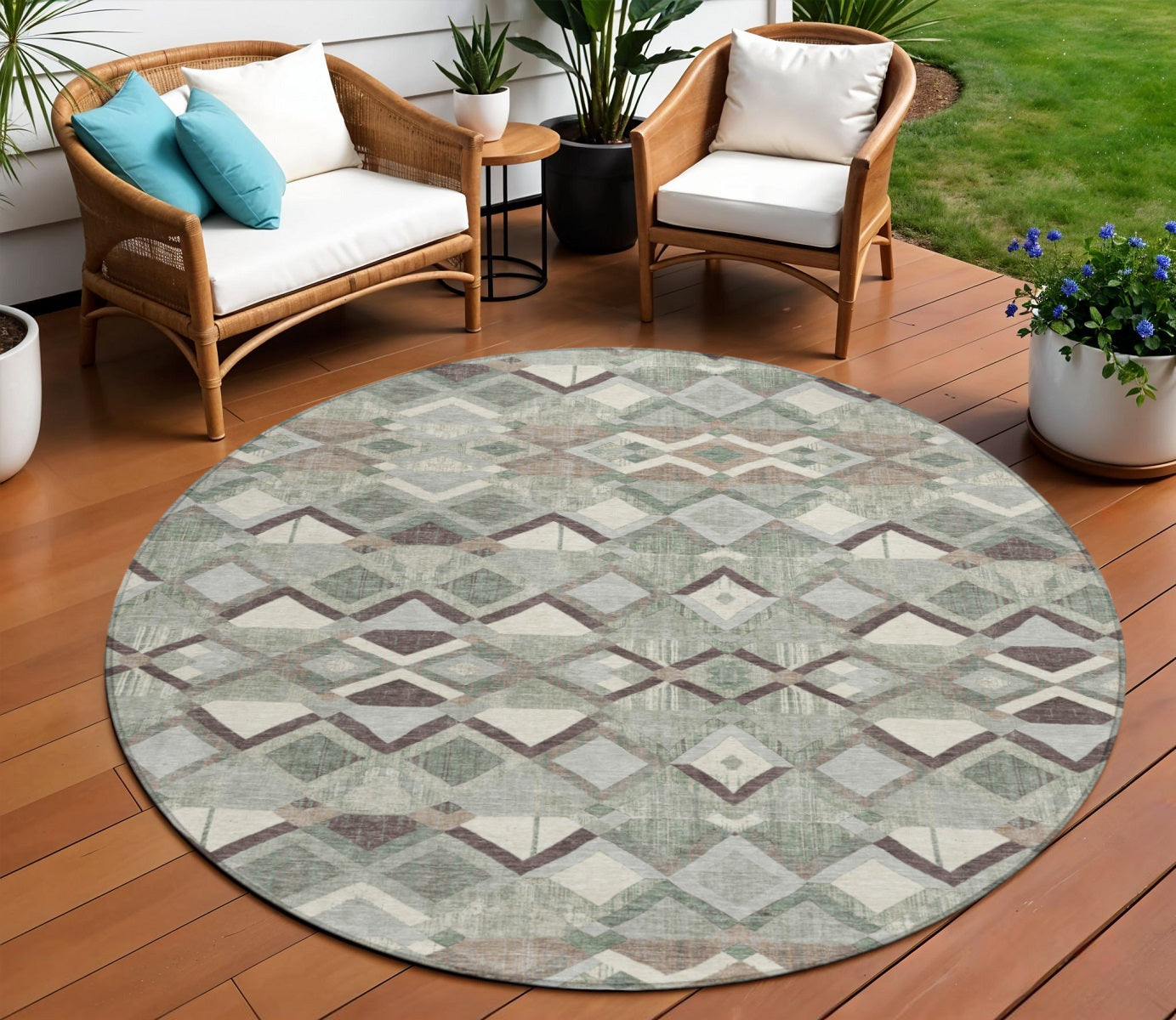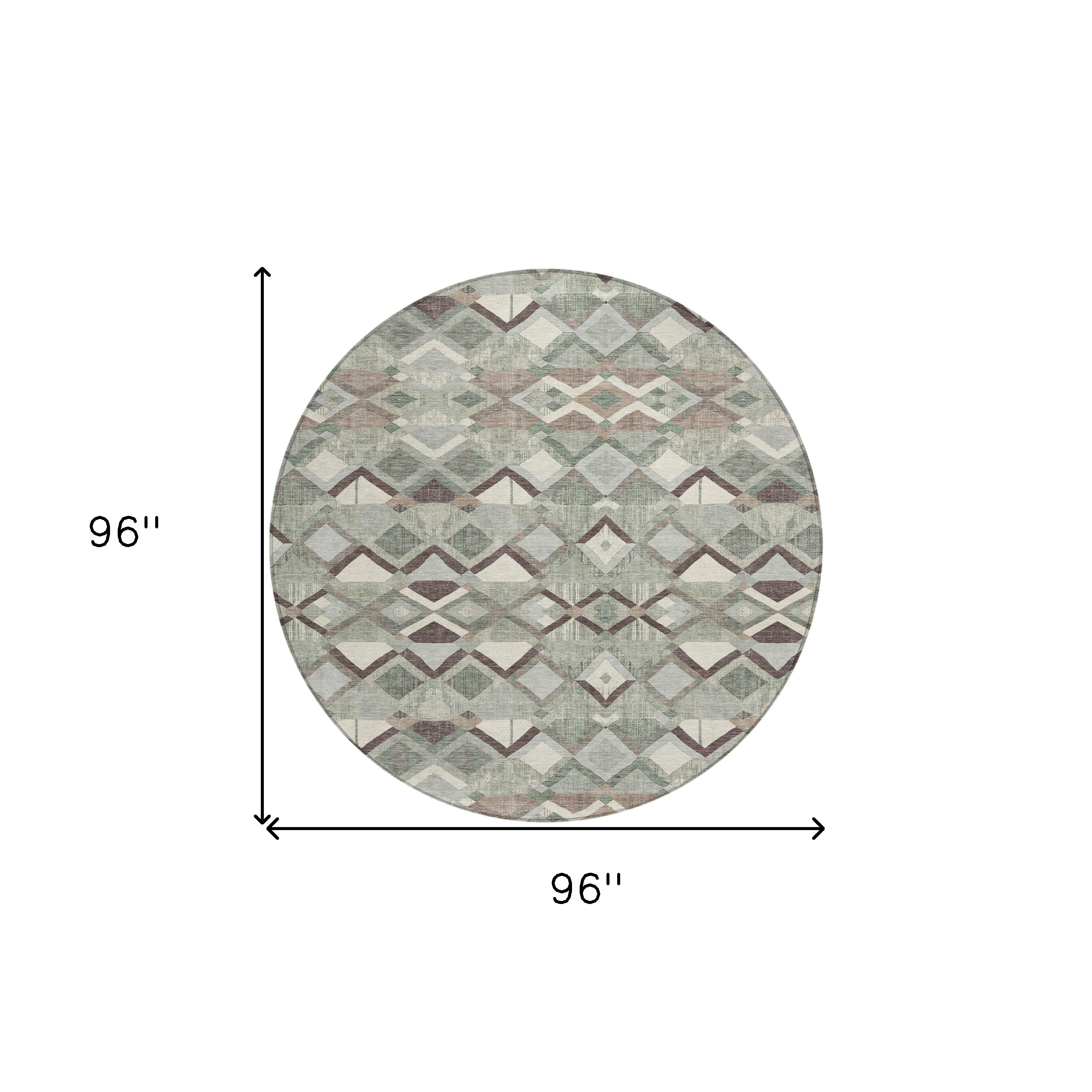 8' Sage And Off White Round Geometric Washable Indoor Outdoor Area Rug