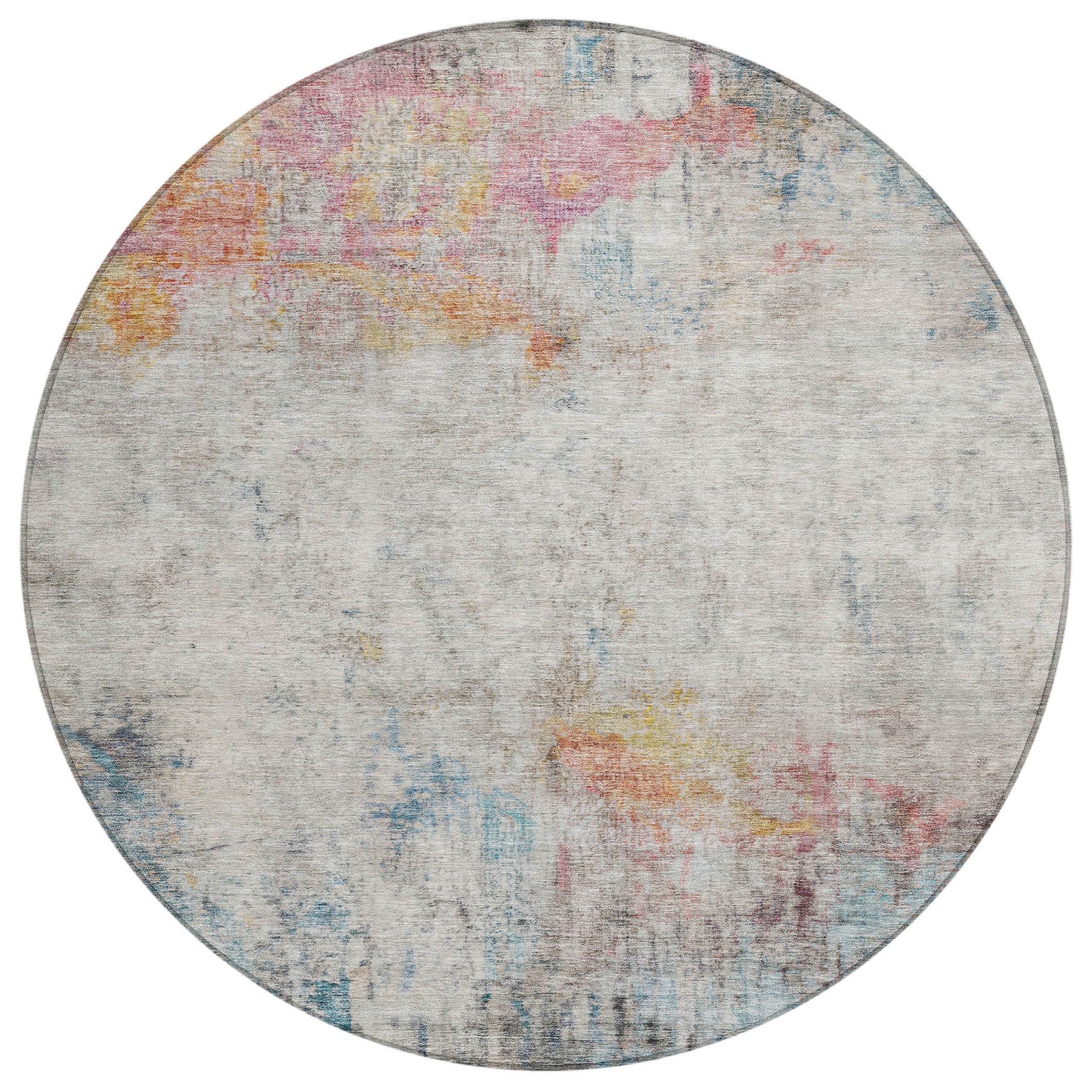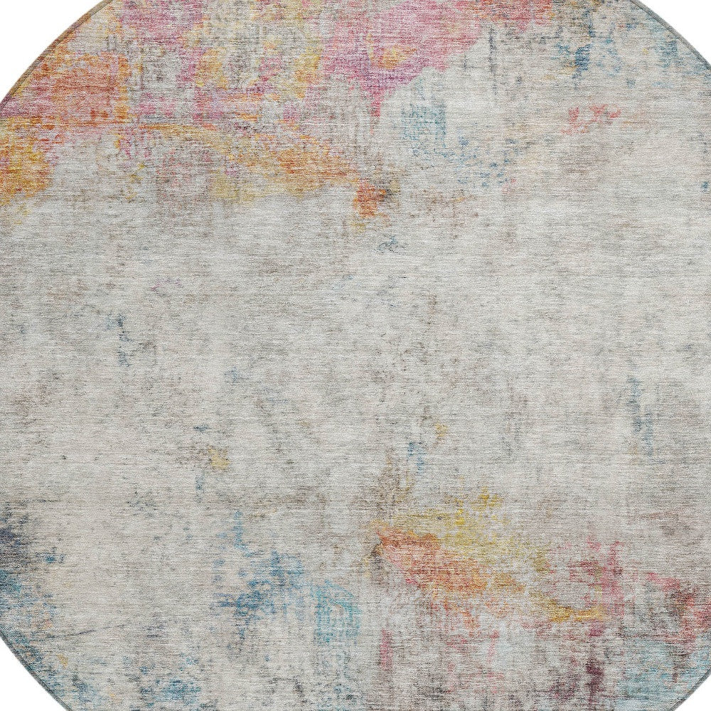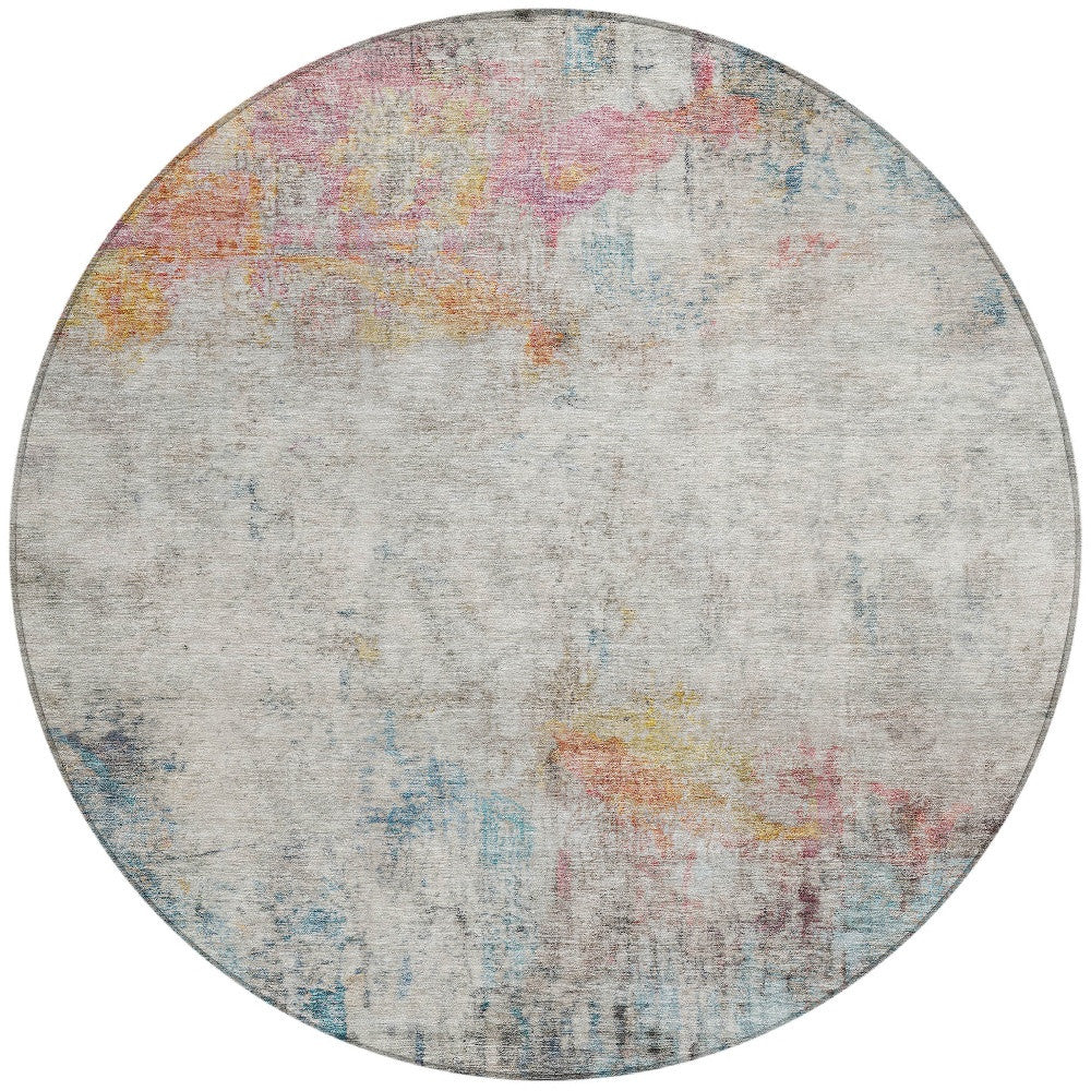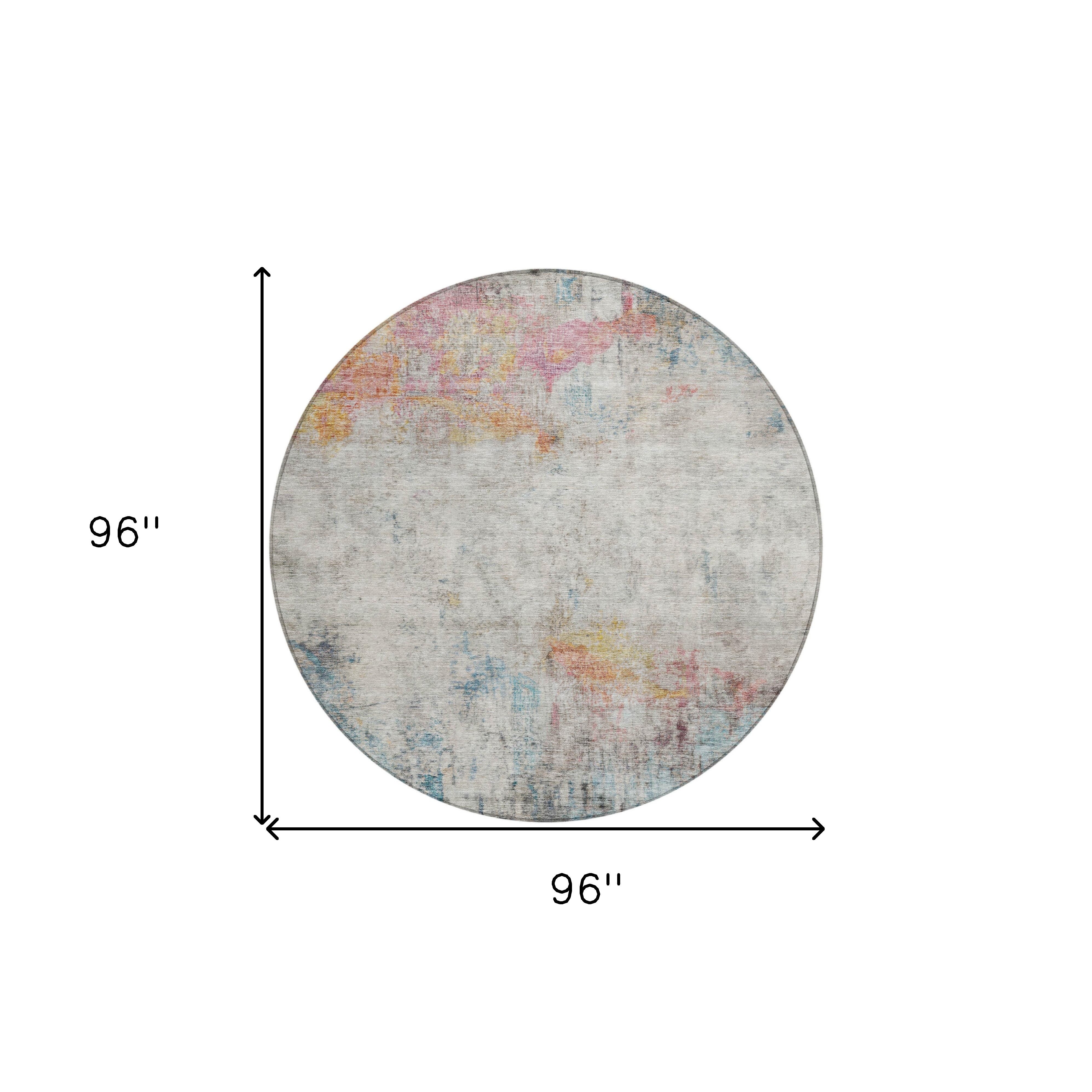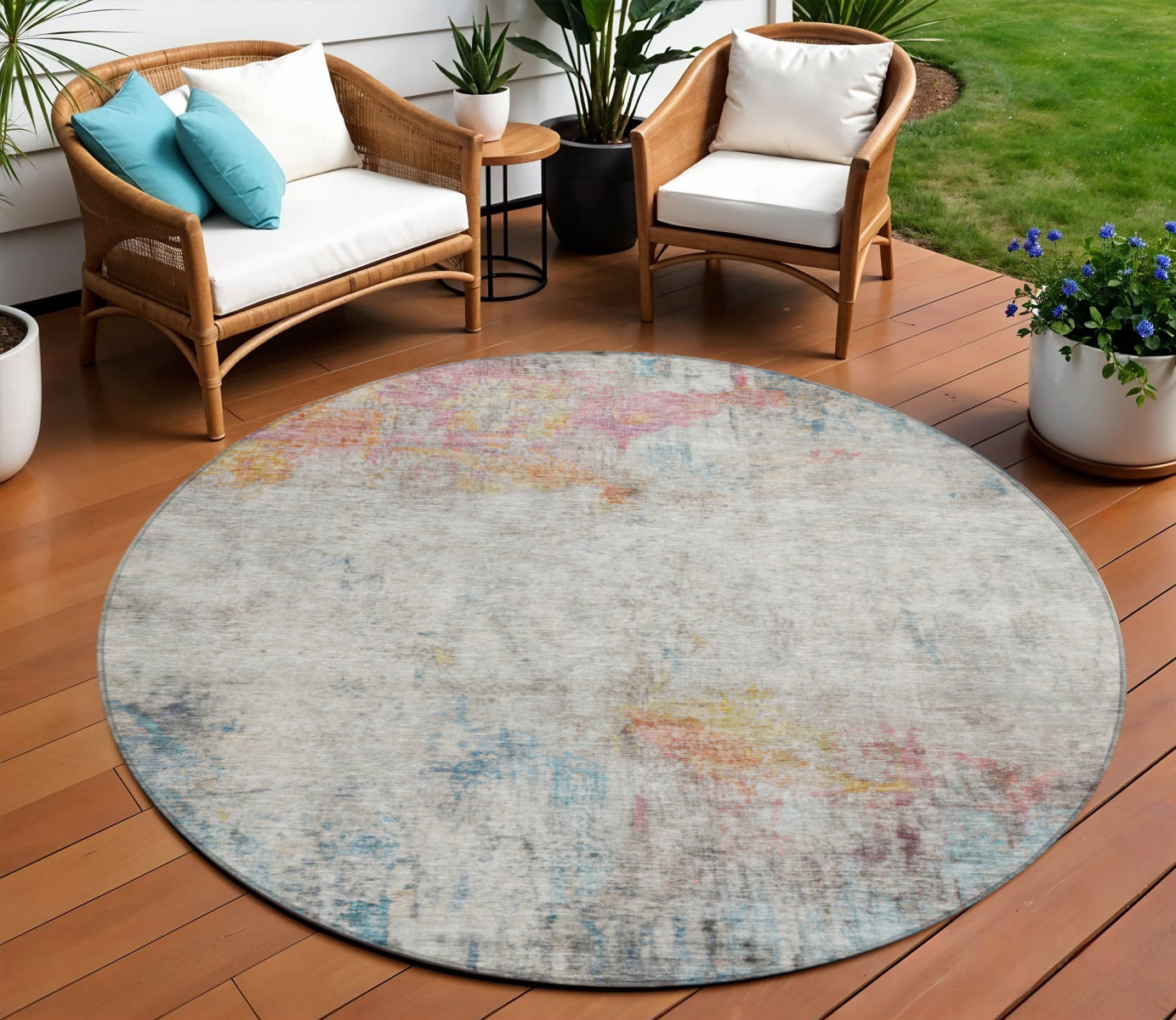 8' Teal Blue Round Abstract Washable Indoor Outdoor Area Rug