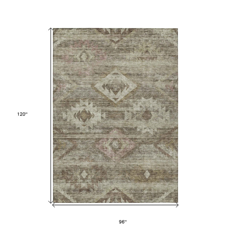 8' X 10' Brown Beige And Tan Southwestern Washable Indoor Outdoor Area Rug