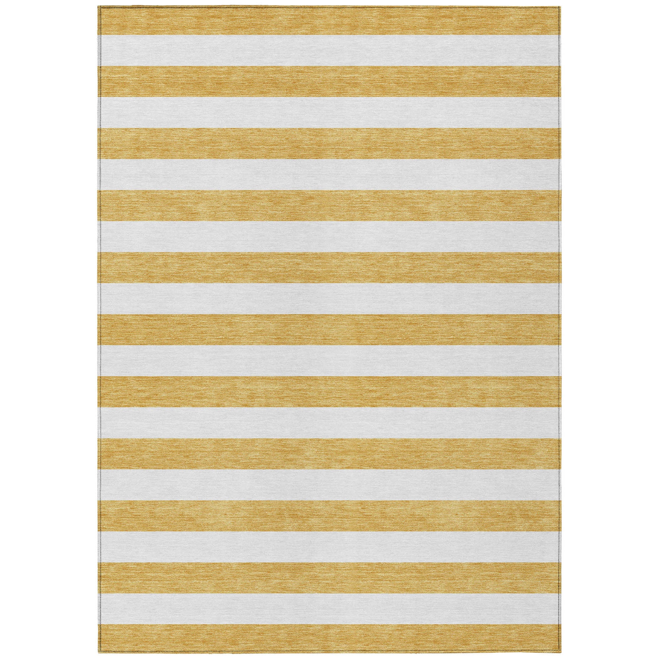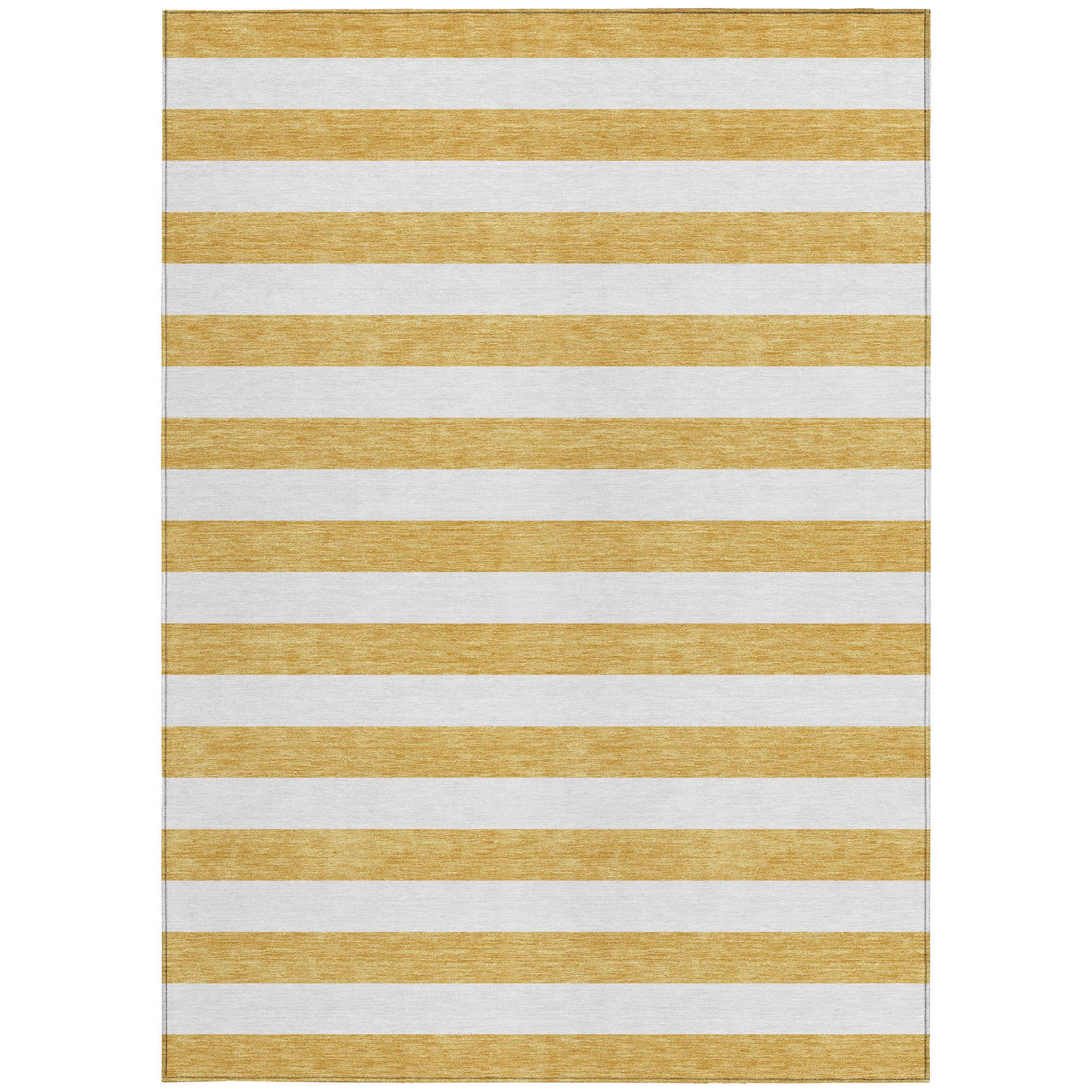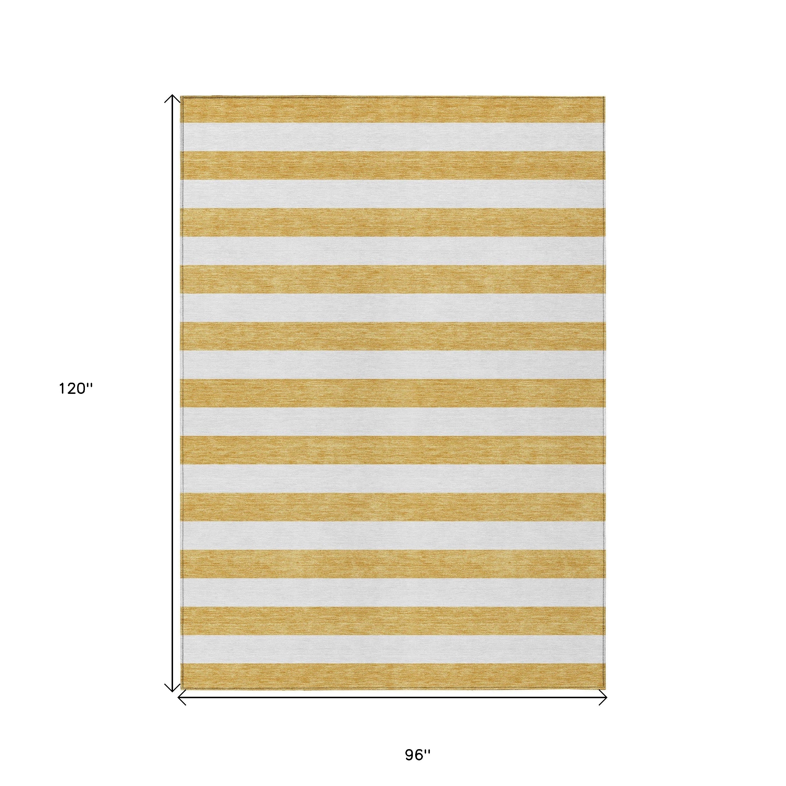 8' X 10' Gold Striped Washable Non Skid Indoor Outdoor Area Rug